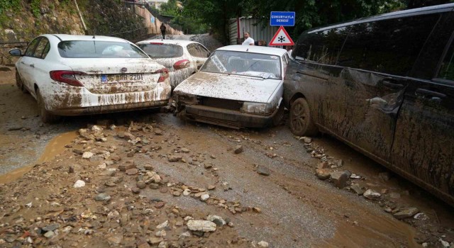 Bursa’da sağanak yağış sebebiyle birçok evi su basarken, taşan dereler sokaklarda park halinde bulunan araçları önüne kattı. Uludağ’ın eteklerindeki Yıldırım ilçesi Teferrüç Mahallesinde bulunan Karınca deresinden kopan taş parçaları sokağı yürünmez hale getirdi. Dereden taşan sulara dayanamayan otomobiller üst üste geldi. Kullanılmaz hale gelen otomobillerini gören vatandaşlar, yaşananları hayretler içerisinde izledi.