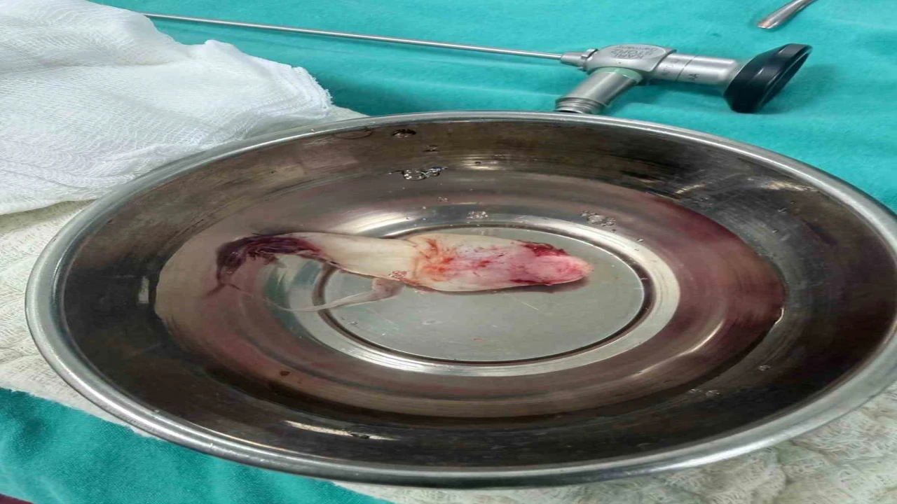 Edinilen bilgiye göre, burun tıkanıklığı ve kulağında işitme azlığı şikayeti bulunan çocuk 12 yaşındaki Halil İbrahim Eliaçık, geniz eti büyümesi şüphesiyle muayeneye alındı. Endoskopik inceleme sırasında sinüs içerisinden çıkarak burun arkasına ve genze kadar uzanan büyük bir kitle tespit edildi. Uzmanlar tarafından "antrokanal polip" olarak adlandırılan bu oluşumun, alerji ve sinüzit zemininde geliştiği ifade edildi. Yapılan operasyonla polip kökünden ayrılarak çıkarıldı.