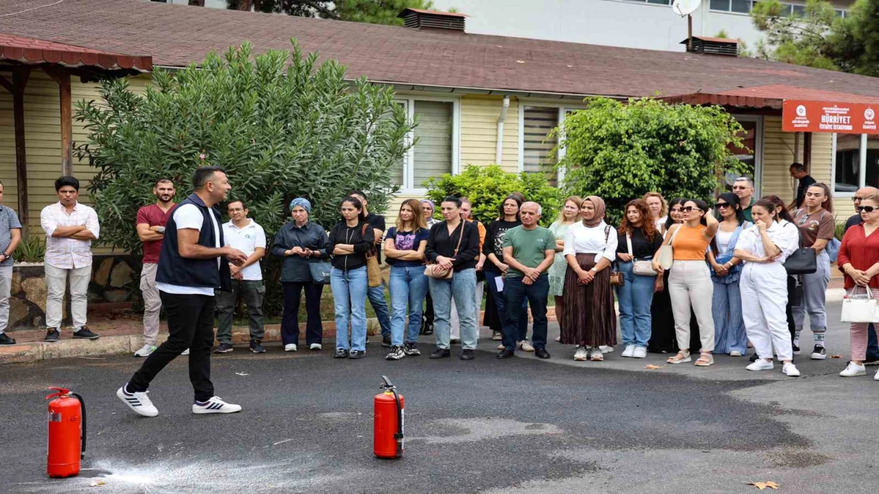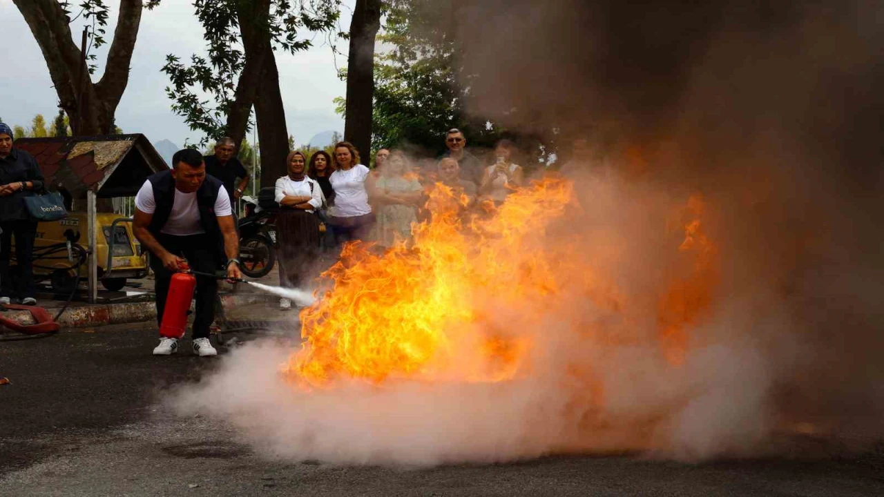 Antalya Büyükşehir Belediyesi İtfaiye Daire Başkanlığı, kurum içi iş güvenliği tedbirleri kapsamında belediye personeline yönelik yangın eğitimlerini sürdürüyor. Eğitimlerde yangınların nedenleri, acil durum müdahaleleri ve tahliye yöntemleri teorik olarak anlatılırken, uygulamalı yangın söndürme tatbikatları ile bilgiler pratiğe dökülüyor.