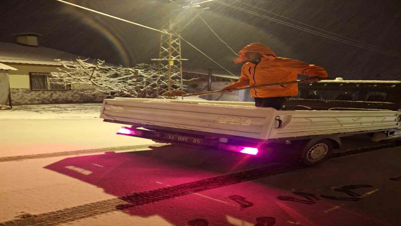 Mersin Büyükşehir Belediyesi ekipleri gece boyunca karla mücadele çalışması yürüttü