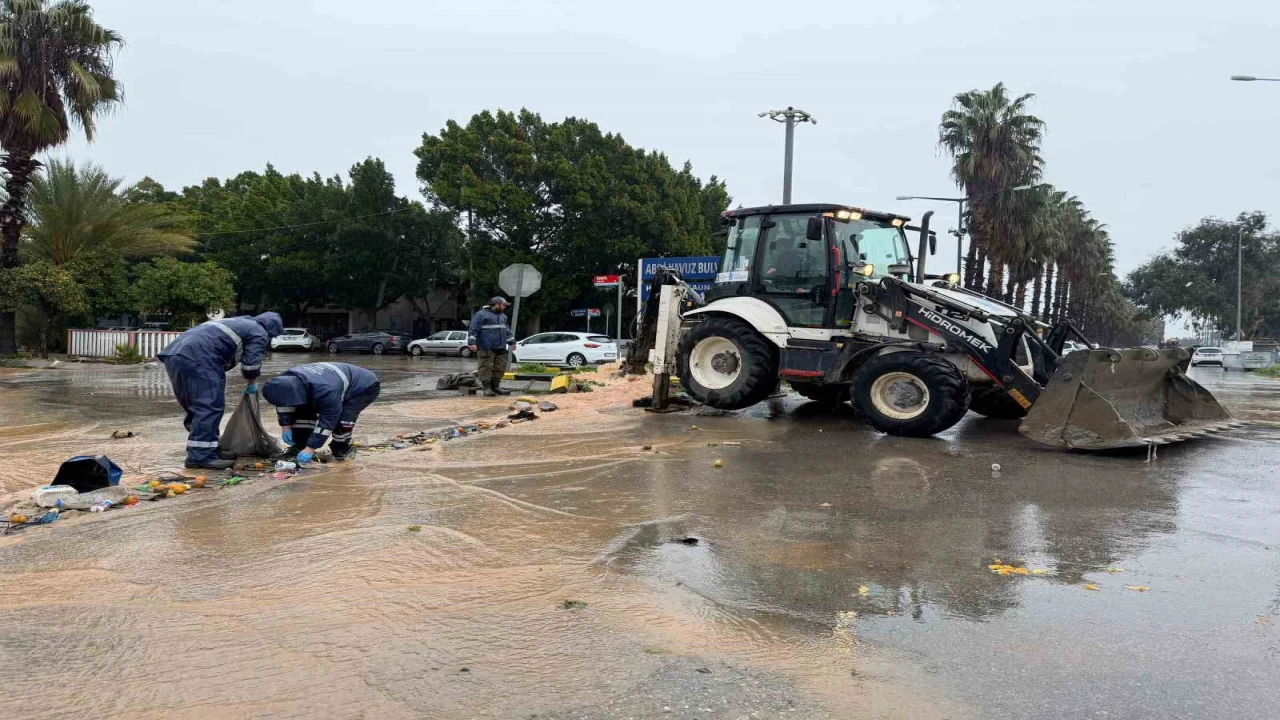 Antalya Büyükşehir Belediyesi ekipleri dün gece saatlerinden itibaren yağış ve kuvvetli rüzgar uyarısına karşı teyakkuza geçti. Büyükşehir ekipleri, ana arterlerin açık tutulması ve rögarların tıkanmaması için çalışma yaptı.