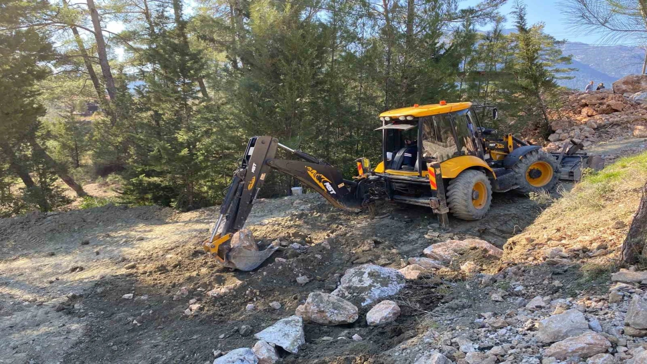 Antalya Büyükşehir Belediyesi, Kırsal Hizmetler Dairesi Başkanlığı ekipleri heyelan meydana gelen grup yollarının güvenliğini arttırmak için duvar çalışması yapıyor.