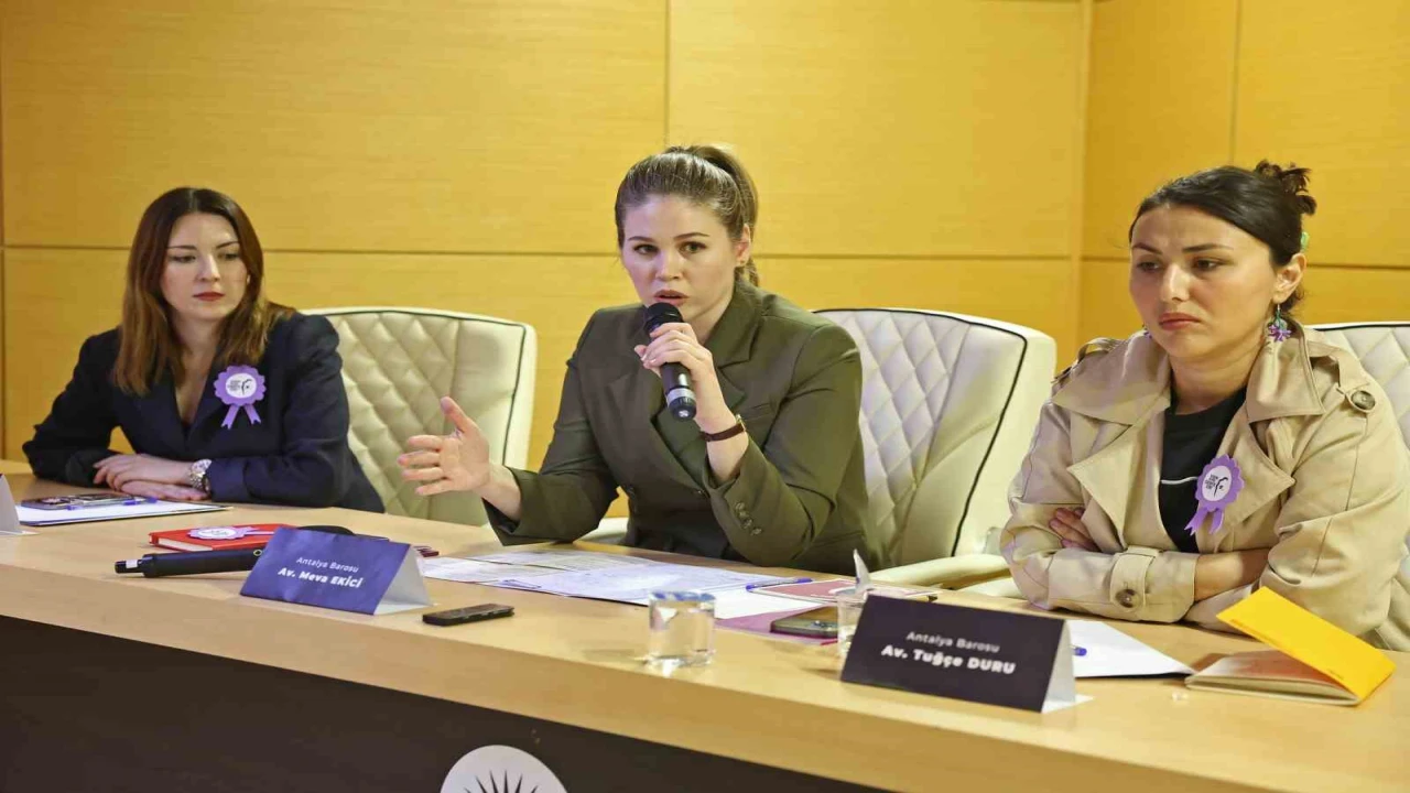 Antalya Barosu Avukatlarından Tuğçe Duru ve Meva Ekici ise kadına yönelik şiddette 6284 sayılı kanunda kadınlar haklarından bahsetti. 6284 sayılı yasa kadınların yaşam hakkını güvence altına alan, şiddet mağdurunu koruyan ve şiddetin önlenmesi için gerekli tedbirleri içeren en önemli yasal mevzuat olduğunu ifade ettiler.