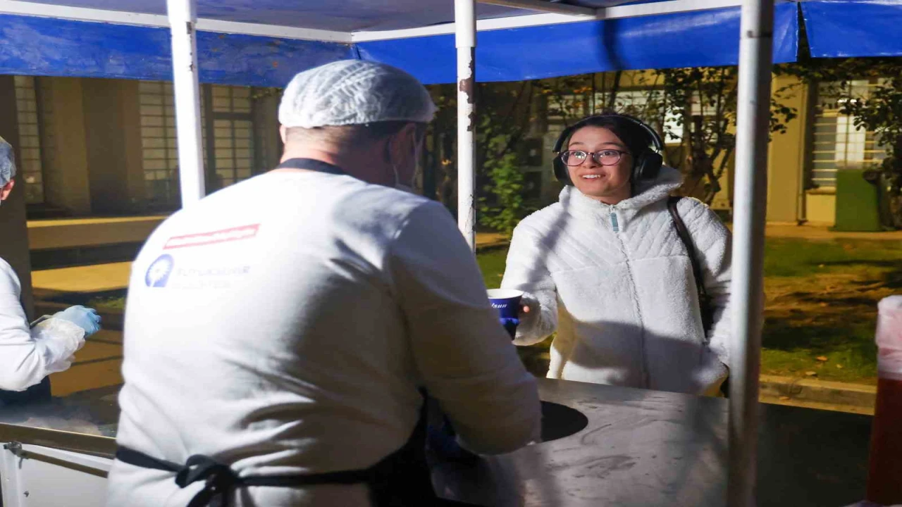 ANTALYA BÜYÜKŞEHİR BELEDİYESİ, SINAV HAFTASI BAŞLAYAN AKDENİZ ÜNİVERSİTESİ ÖĞRENCİLERİNE SICAK ÇORBA İKRAMINDA BULUNUYOR.