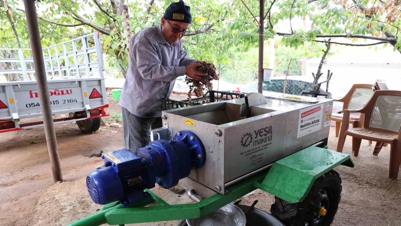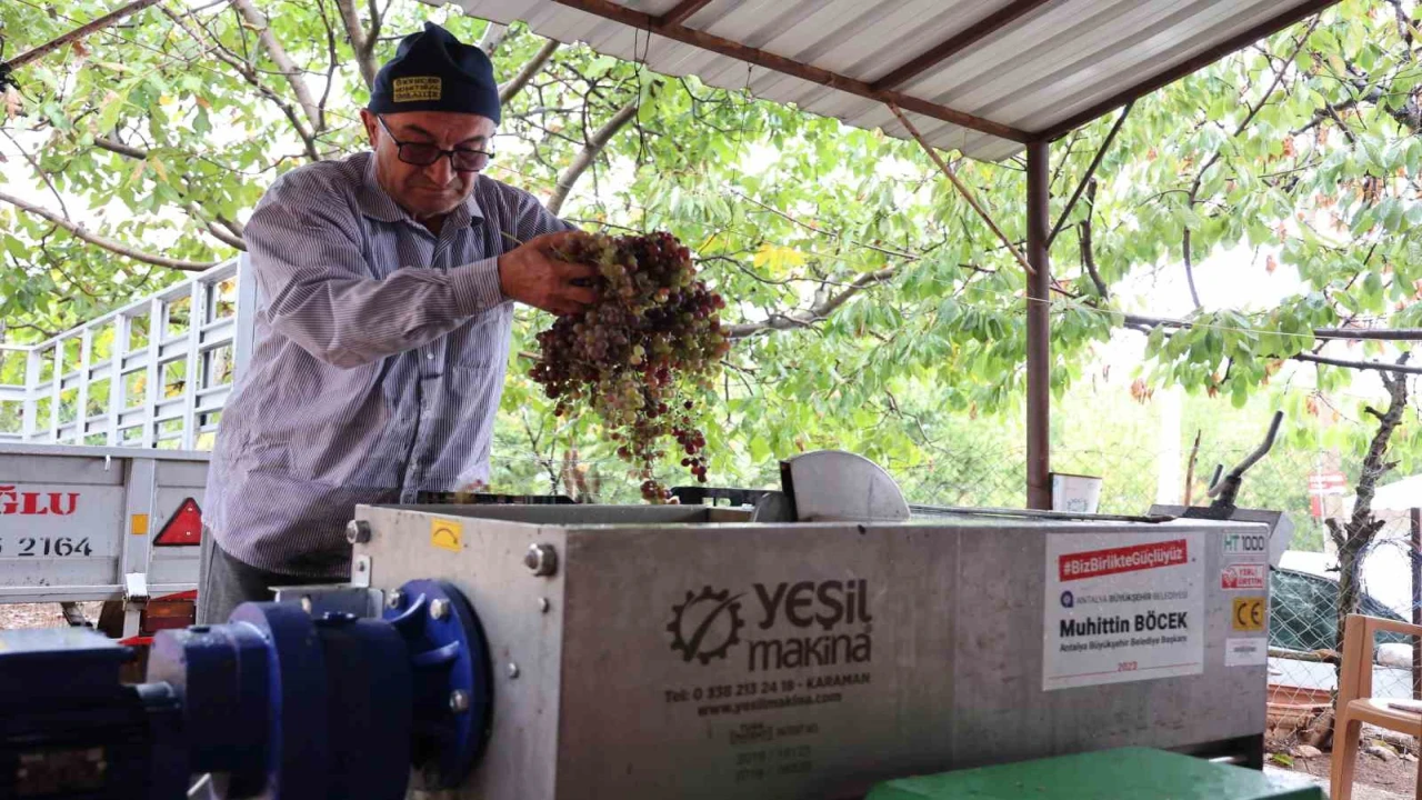 Antalya Büyükşehir Belediyesi, Elmalı ilçesinde 6 vatandaşa pekmez üretiminde iş gücü ve zaman tasarrufu sağlayan üzüm sıkma makinesi desteğinde bulundu.