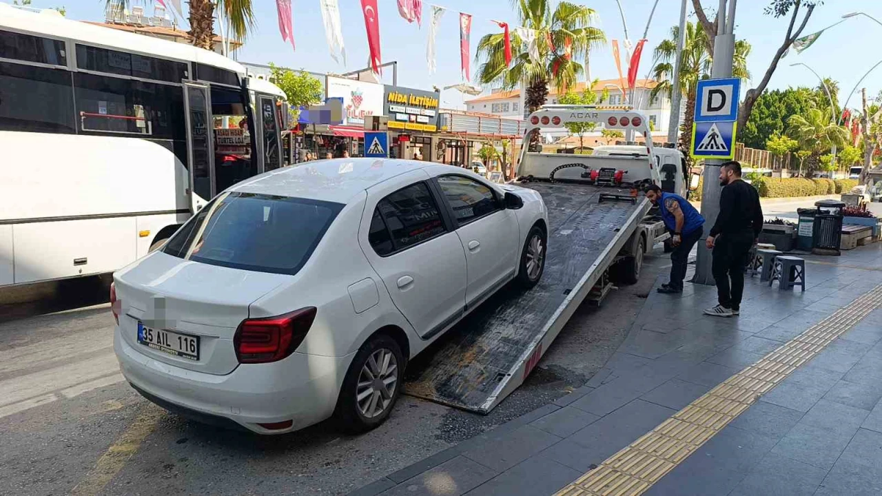 Manavgat’ta minibüs durağına bırakılan ve yaklaşık 2 saat alarmı çalmasına rağmen sahibine ulaşılamayan otomobil, çekici ile yediemin otoparkına çekildi. Araca, yasak yere park nedeniyle 933 TL para cezası kesildi.