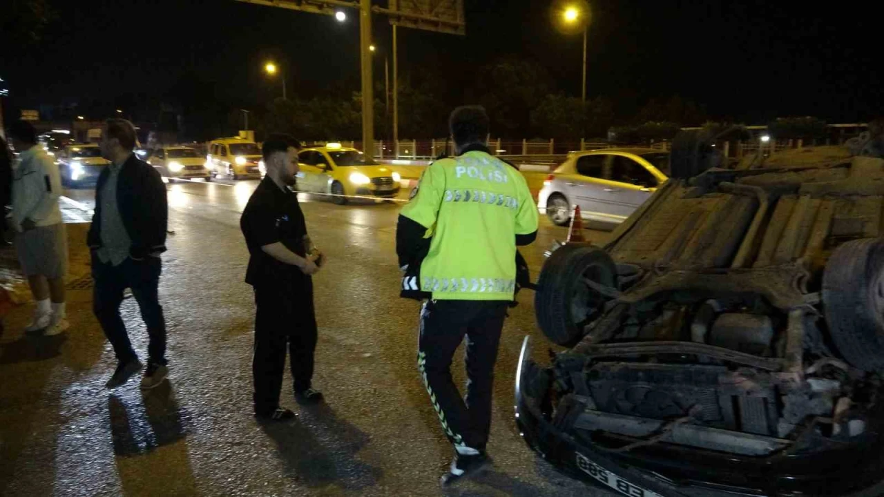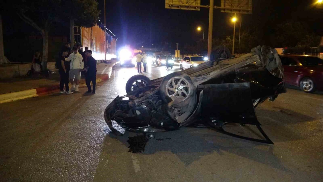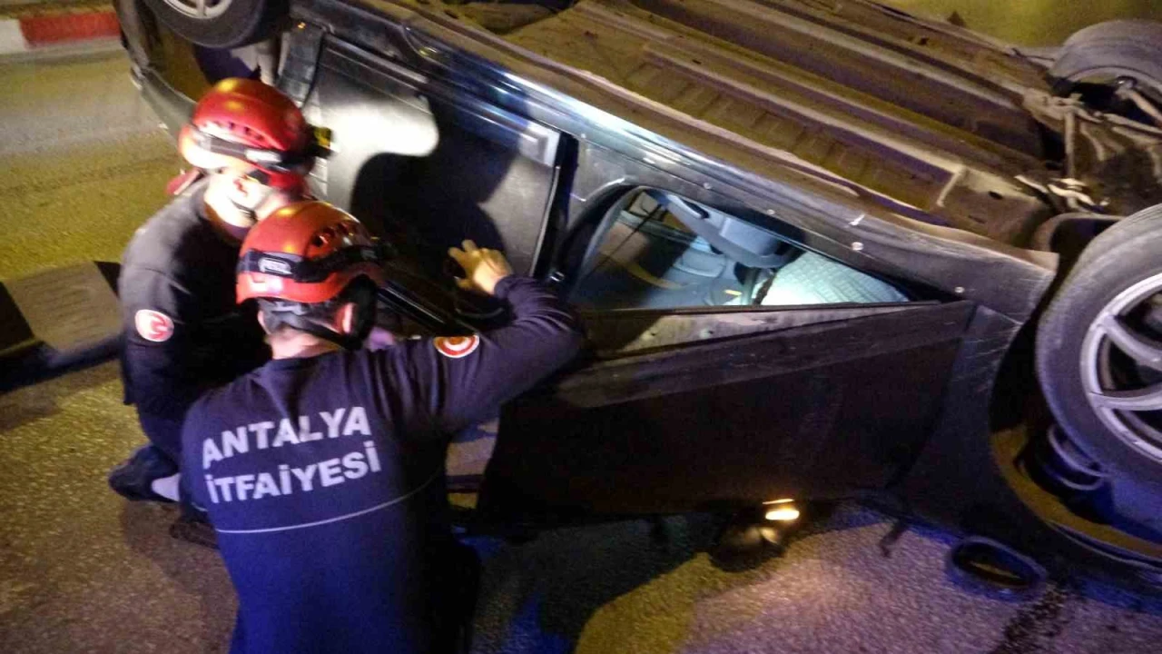 Antalya çalıştığı galeriden emanet aldığı otomobille arkadaşlarıyla birlikte gezmeye çıkan genç sürücü, direksiyon hakimiyetini kaybederek kaza yaptı. Araç, taklalar atarak ters dönerken, içinde bulunan 5 kişi şans eseri yaralanmadan kazayı atlattı.
