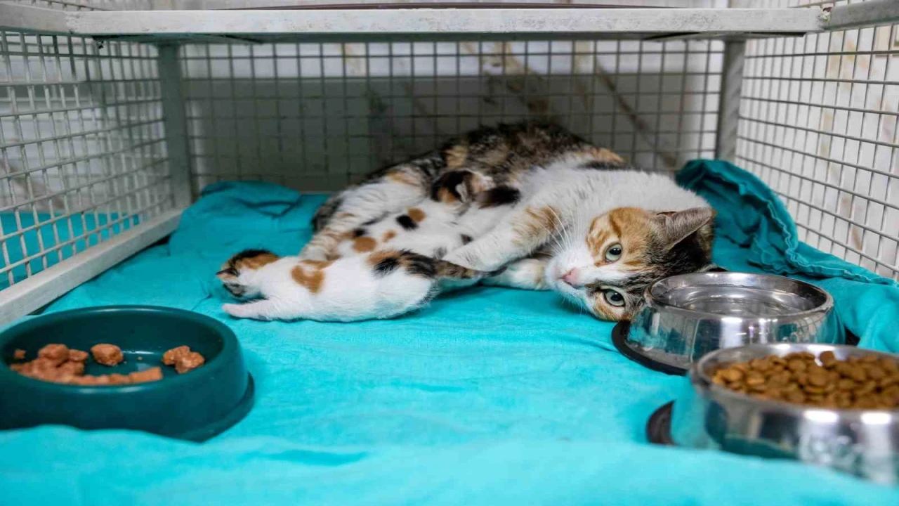 Mersin’de doğum yaptığı camiye yavrularıyla birlikte sığınan kedi, Mersin Büyükşehir Belediyesi ekipleri tarafından Kaşlı Geçici Hayvan Bakımevi ve Rehabilitasyon Merkezine götürülerek koruma altına alındı.