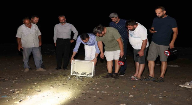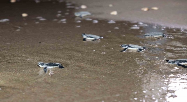 Mersin’in Akdeniz ilçesindeki Kazanlı sahilinde yumurtadan çıkan caretta caretta ve yeşil deniz kaplumbağaları denizle buluşuyor.