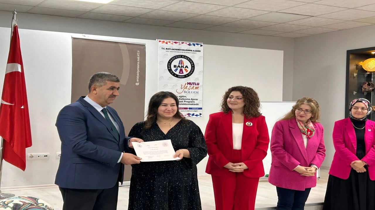 Eğitim sonunda BAKA Antalya Yatırım Destek Ofisi Koordinatörü Jale Akhundova Demir, Muratpaşa İlçe Milli Eğitim Müdürü Mustafa Coşkunsu, Antalya Olgunlaşma Enstitüsü Müdürü Emine Erkal ve BAKA uzmanı İffet Gözde Bozdoğan ve enstitü yetkililerinin katılımı ile başarılı kursiyerlere sertifikaları takdim edildi.
