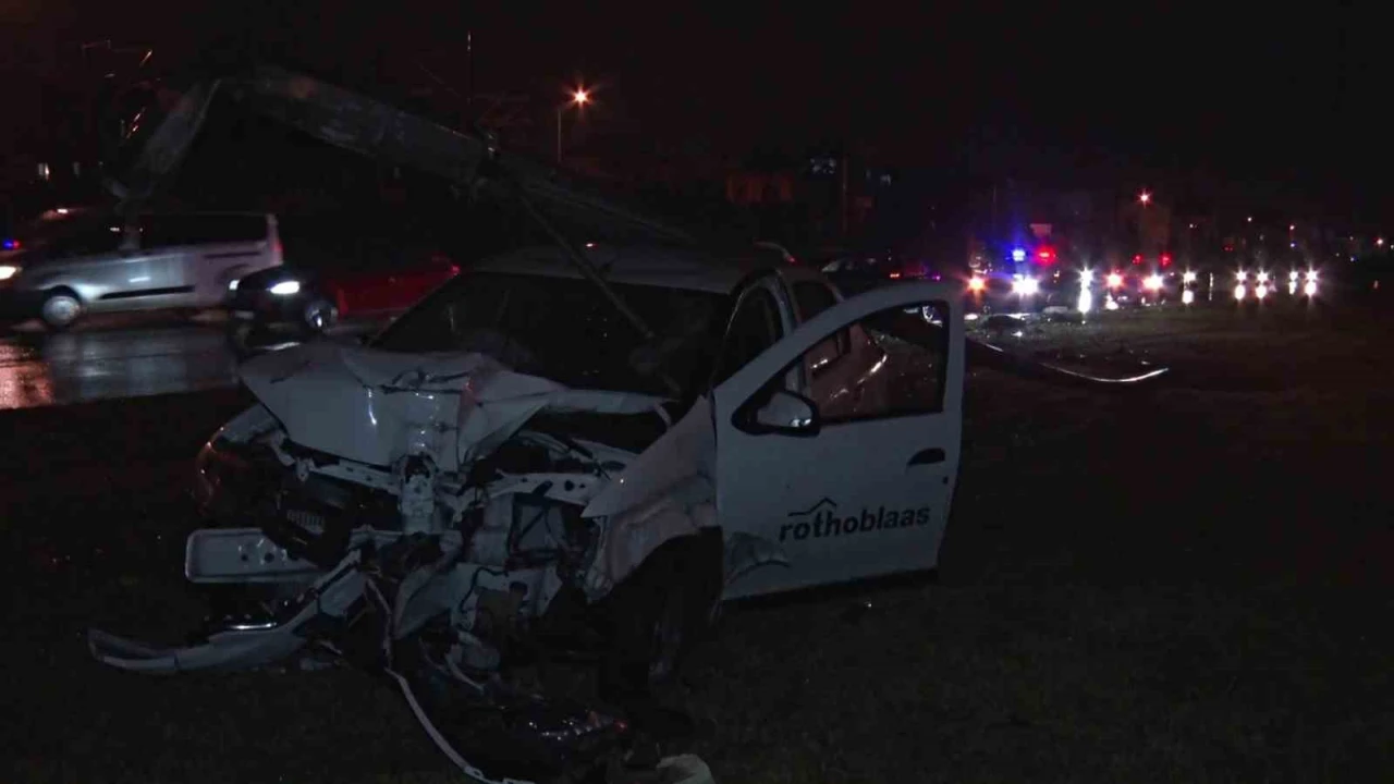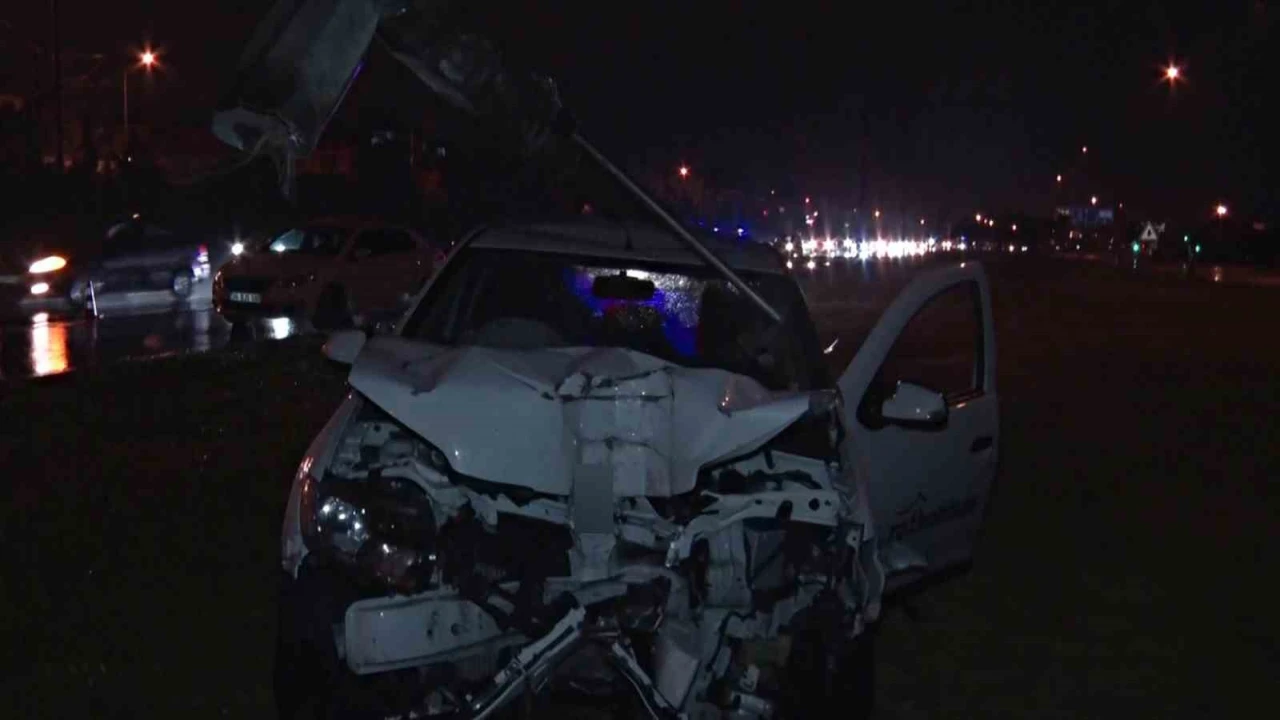 ANTALYA’DA YAĞIŞ NEDENİYLE KAYGANLAŞAN YOLDA BİR BAŞKA ARACIN ÇARPMASI İLE KONTROLDEN ÇIKAN OTOMOBİLİN ÇARPTIĞI AYDINLATMA DİREĞİ ÜZERİNE DEVRİLDİ. KAZAYA AYNI ARAÇTA BULUNAN 2 KİŞİ YARALANDI.