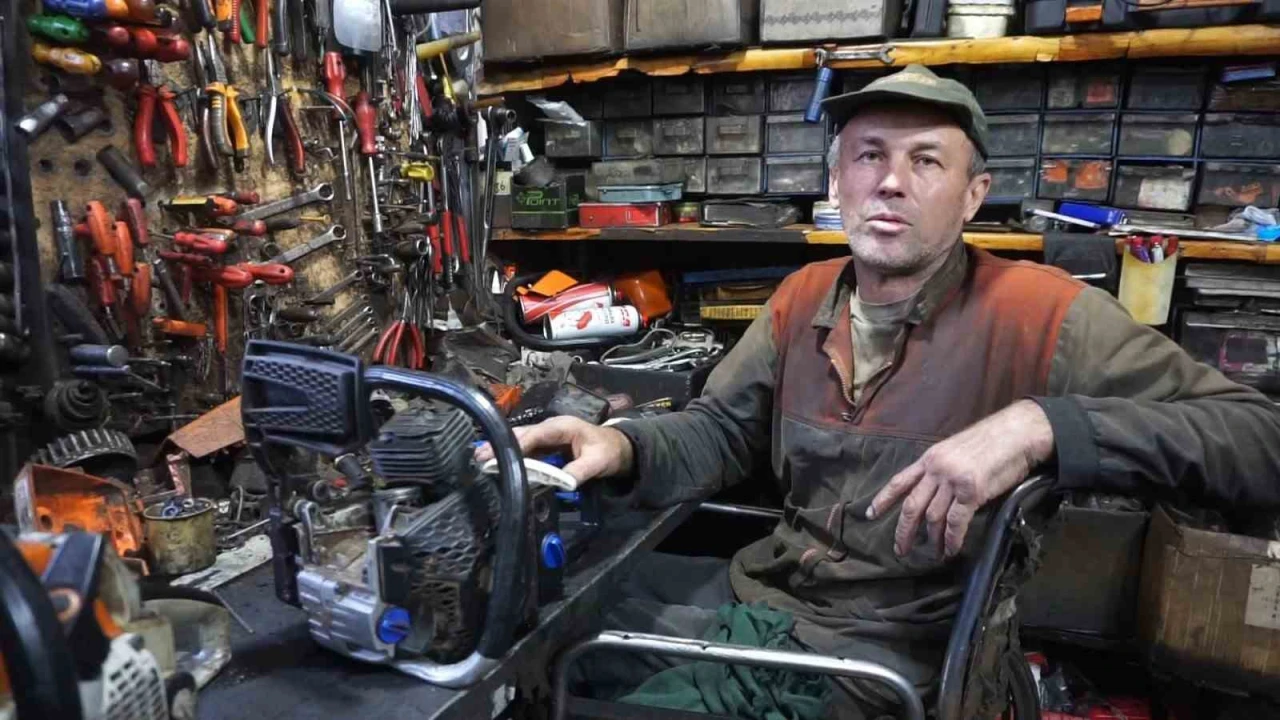Burdur’da asıl mesleği marangozluk olan Hüseyin Erkal, 24 yıl öncesinde geçirdiği kazanın ardından hayata küsmedi. Şimdilerde tekerlekli sandalyesiyle sıfırdan öğrendiği odun motoru ve süt sağım makinesi tamiri ile çalışmaya devam ediyor.