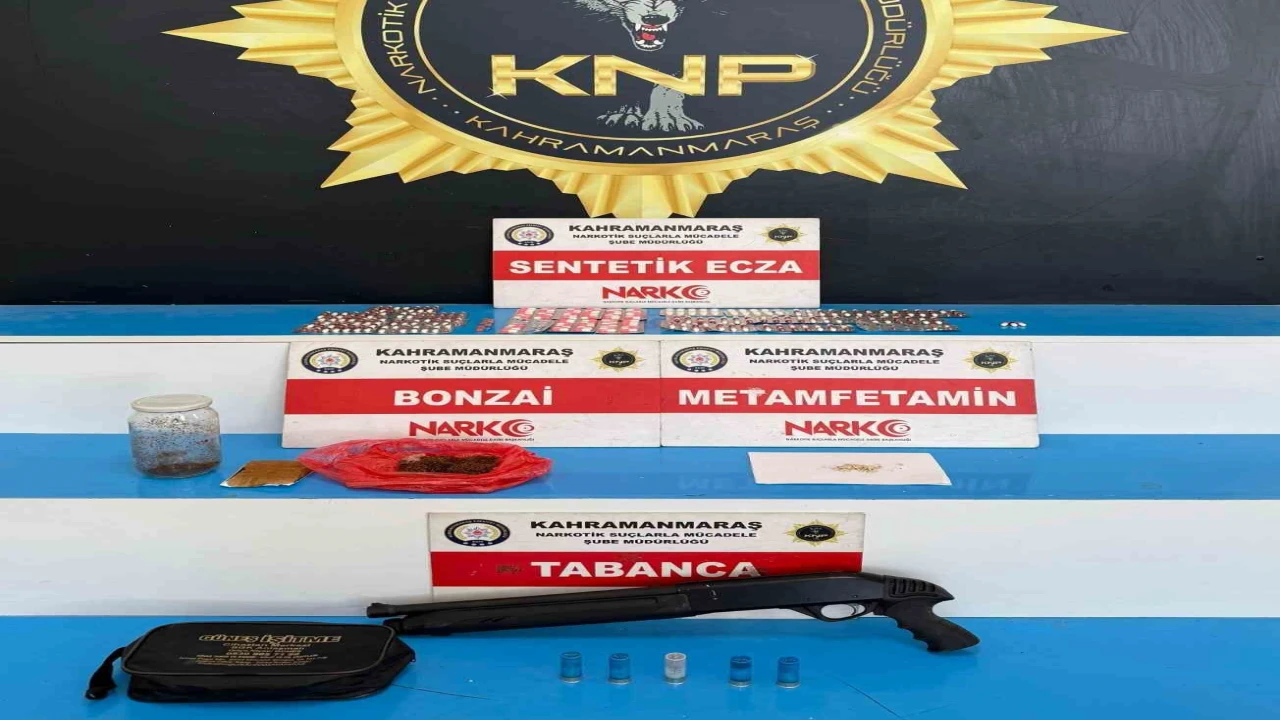Operasyonlarda, 37,53 gram metamfetamin, 260,62 gram sentetik kannabinoid (bonzai), 1,51 gram bonzai hammaddesi, 666 adet sentetik ecza, 640 paket içi doldurulmuş makaron, 3’ü tabanca 5 ruhsatsız silah ele geçirildi.
