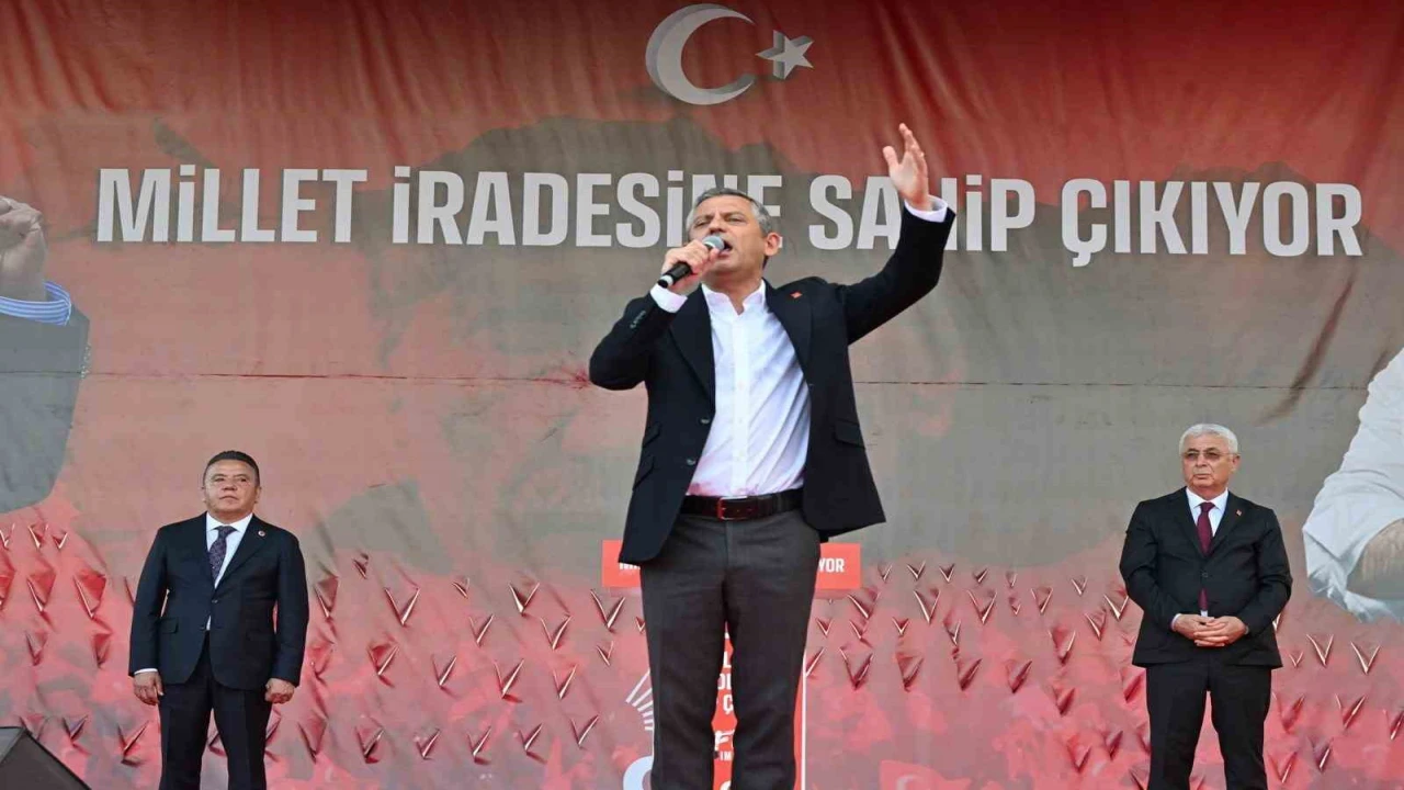 Saraçhane’den başlayan sürecin tüm Türkiye’ye yayıldığını söyleyen Özel, "Ey Erdoğan, ben milletim. Adayımı bırak, sandığımı getir. Cesaretin varsa sandıkta karşıma çık" diye konuştu. Asgari ücrete ara zam istediklerini de yineleyen Özel, "Asgari ücrete ara zam hakkımız, bunu söke söke alacağız" ifadelerini kullandı.