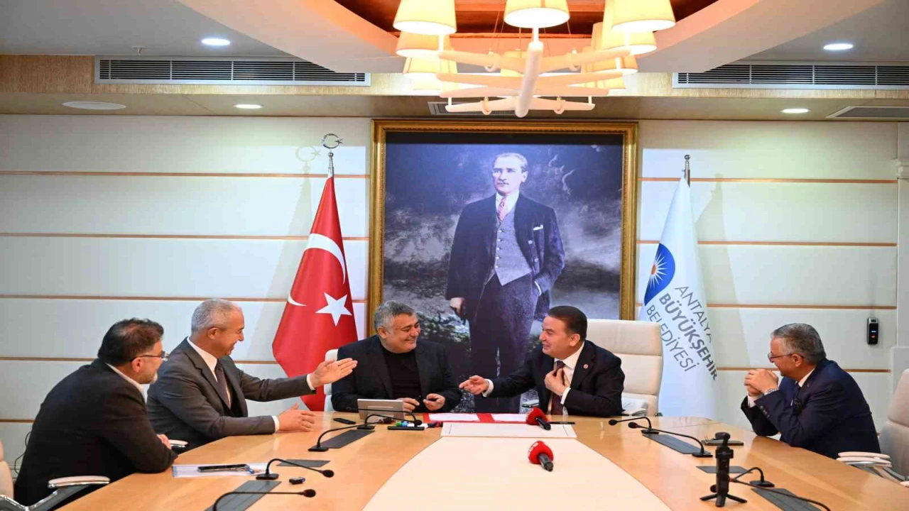 Başkan Muhittin Böcek, 4 ilçede uygulanacak proje için Alanya Belediye Başkanı Osman Tarık Özçelik, Serik Belediye Başkanı Dr. Kadir Kumbul, Aksu Belediye Başkanı İsa Yıldırım ve Kemer Belediye Başkanı Necati Topaloğlu ile bir protokol imzaladı.