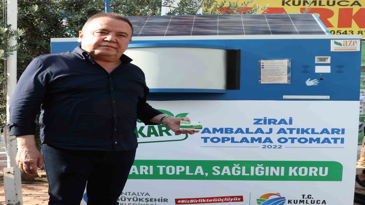 Uluslararası ödüle layık görülen projenin şu an 3 ilçede uygulandığı söyleyen Başkan Muhittin Böcek, "4759 çiftçimiz projemize kayıtlıdır. 13 akıllı otomat ile 3,6 ton zirai ilaç ambalaj atığı toplanmıştır. Toplanan atıkların geri dönüşümü yapılarak ekonomiye de katkı sağlandı. Bu protokol ile 4 ilçemizde daha uygulamaya geçiyoruz. Alanya, Serik, Aksu ve Kemer’e toplam 15 akıllı otomat yerleştirilecek. Projenin güncel yatırım maliyeti 11 milyon 323 bin 200 TL’dir" dedi.