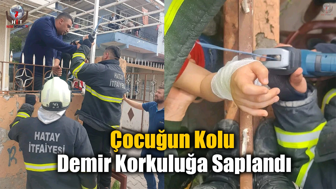 HATAY (İHA) - Hatay'da oyun oynadığı sırada dengesini kaybeden çocuğun kolu demir korkuluğa saplandı. Çocuk, itfaiye ekipleri tarafından kurtarılarak sağlık ekiplerine teslim edildi.