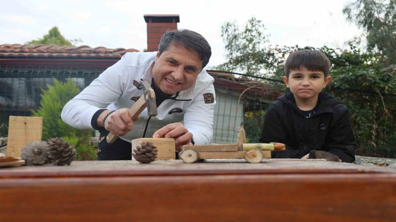 Babaları çocuklarıyla bir araya getirerek kaliteli vakit geçirdikleri bir atölye çalışması yaptıklarını ifade eden eğitimci Fatma Güney, “Bu atölyede de babalarla birlikte çocuklar kendi arabalarını tasarladılar ve çok daha keyifli oynayacaklarını düşünüyorum. Bence burası uzun zamandan beri zaman vakit geçirmemiş olan ailelerin alternatifi oldu. Hep birbirine benzeri olan etkinlikler değil de çocukların eğlenirken öğrenecekleri, öğrenirken de değiştirip dönüştürebileceklerine görmelerini istedik. Çocukların, babalarıyla birlikte aileleriyle doğal bir ortamda zaman geçirmelerini planladık. Biz okul olarak genelde teknolojiden kısmen uzakta olmayı planlıyoruz. Çünkü doğal uyaranlar her yerde çok fazlalar. Çocukların gerçek materyallerle bir şeyleri değiştirip ve uzun soluklu oynamalarını öncelik alıyoruz. 3 saatten beri hiçbir çocuğun elinde bir tane bile telefon yoktu, talep etmediler. Bunun yerine çekiç, çivi, tahta ve özgün araba modelleri çıktı. Bu da bizim için çok keyifliydi” dedi.
