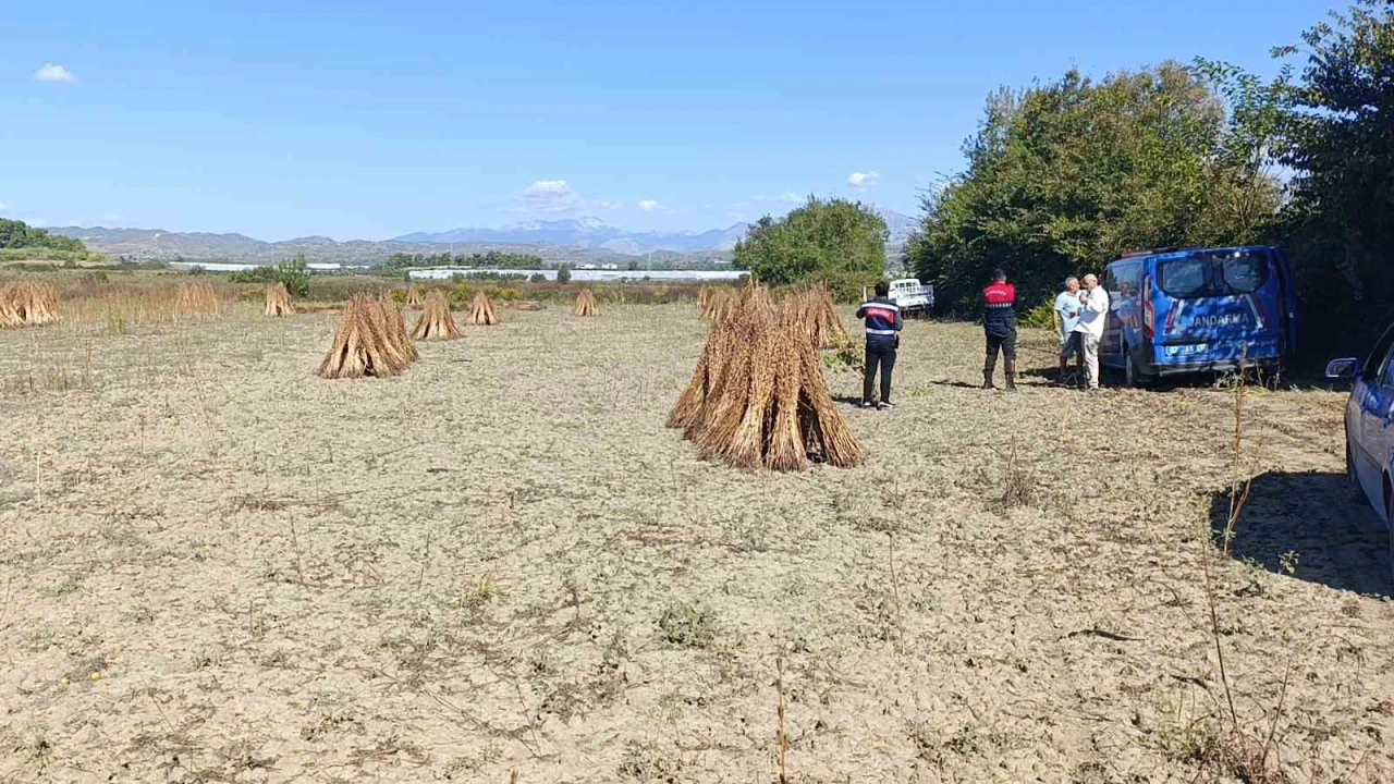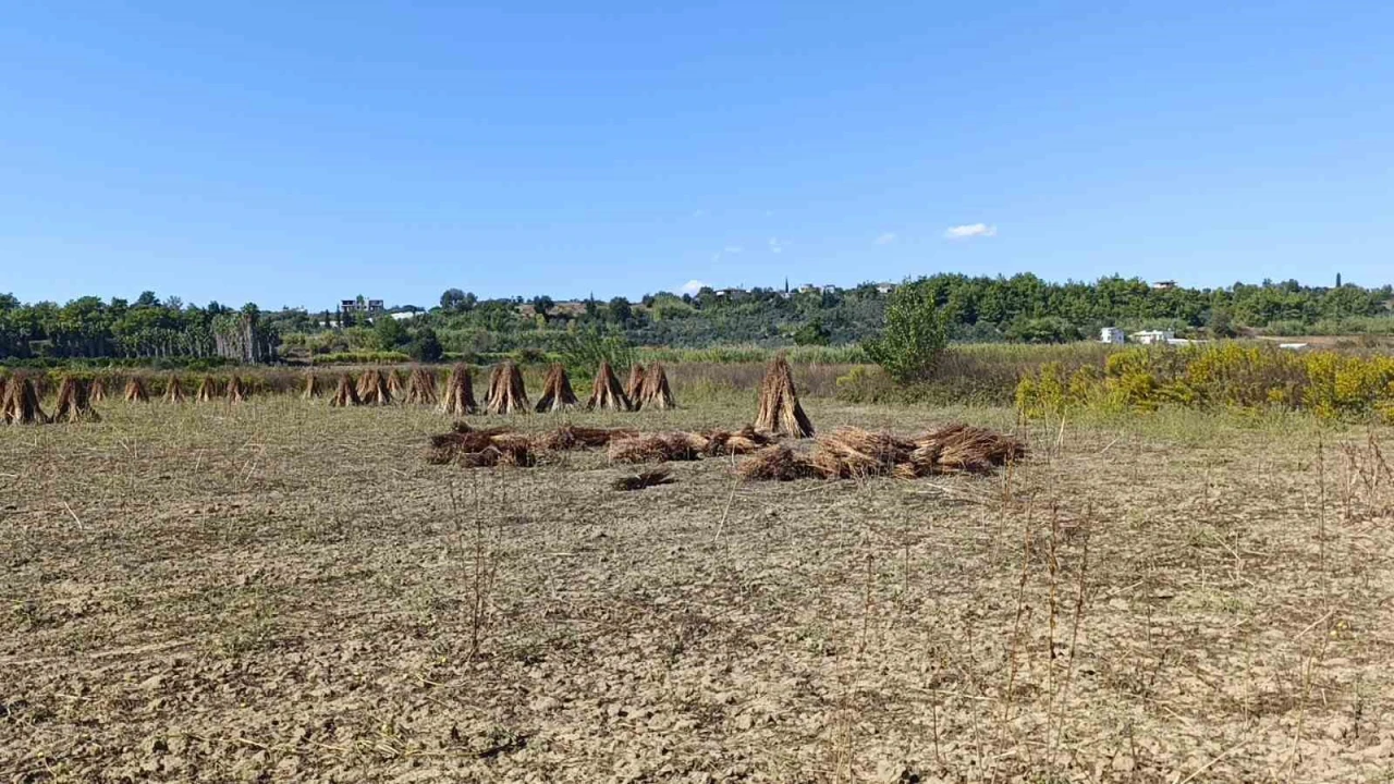 TÜRK PATENT VE MARKA KURUMU TARAFINDAN "MANAVGAT ALTIN SUSAMI" OLARAK TESCİLLENEN MANAVGAT SUSAMININ HASADI DEVAM EDERKEN, TARLADA SİLKİLMEYİ BEKLEYEN SUSAMA HIRSIZ DADANDI. TARLADA SİLKELENMEYİ BEKLEYEN 100 KİLOGRAM DOLAYINDA SUSAM ÇALINDI.