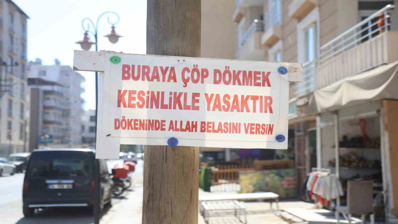 Çöp sorununa ‘Buraya çöp dökmek kesinlikle yasaktır, dökenin Allah belasını versin' sözlerinin olduğu tabelayı asarak son verdi