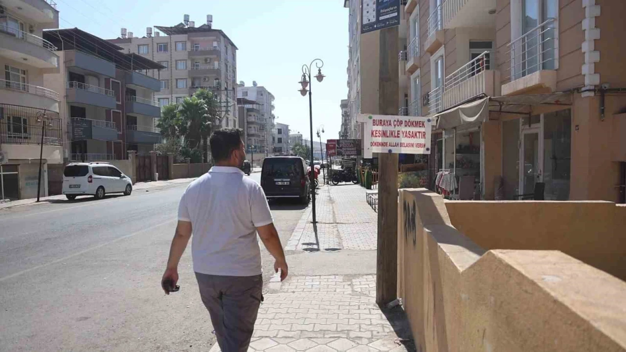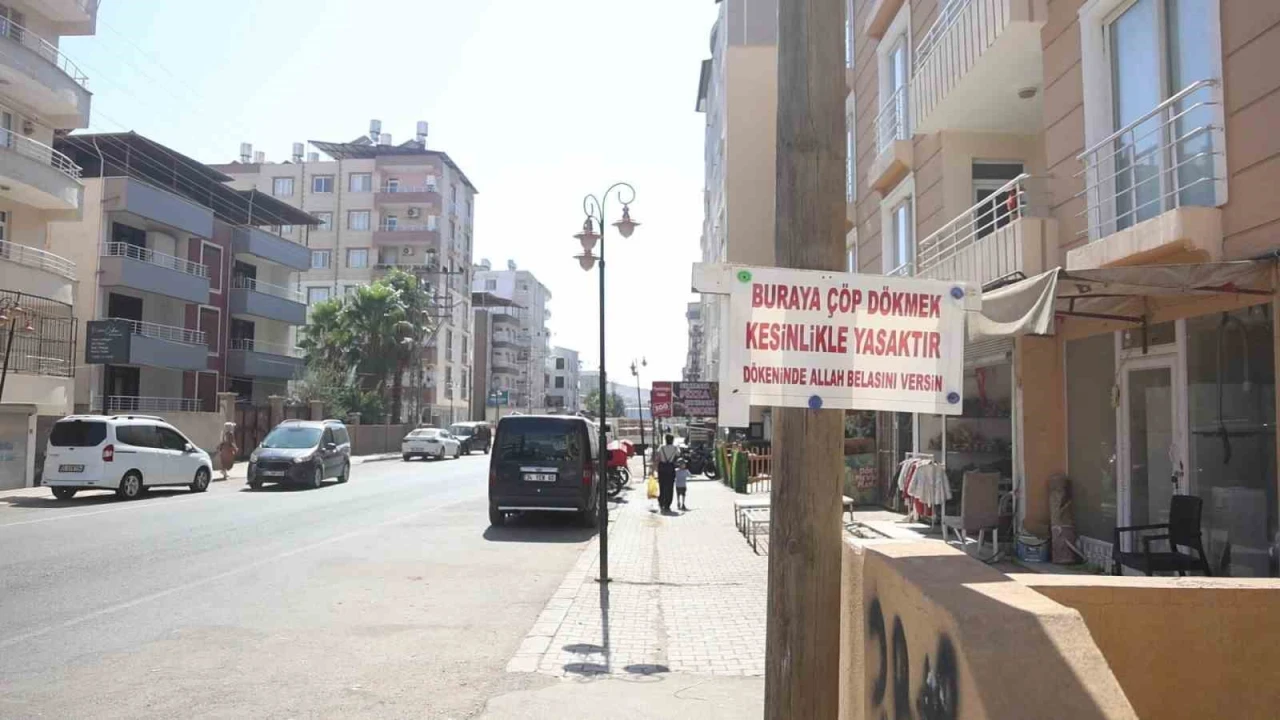HATAY’IN REYHANLI İLÇESİNDE İŞ YERİNİN OLDUĞU APARTMAN KÖŞESİNE SÜREKLİ ÇÖP ATILMASINDAN USANAN ESNAF HASAN GÜNEL, APARTMAN SAKİNLERİYLE BİRLİKTE ‘‘BURAYA ÇÖP DÖKMEK KESİNLİKLE YASAKTIR, DÖKENİN ALLAH BELASINI VERSİN’ SÖZLERİNİN OLDUĞU TABELAYI ASARAK SON VERDİ.