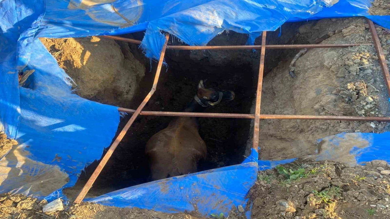 Kısa sürede bölgeye gelen itfaiye ve iş makinesinin yardımıyla büyükbaş hayvan kurtarıldı. Kurtarılan hayvan sahibine teslim edildi.