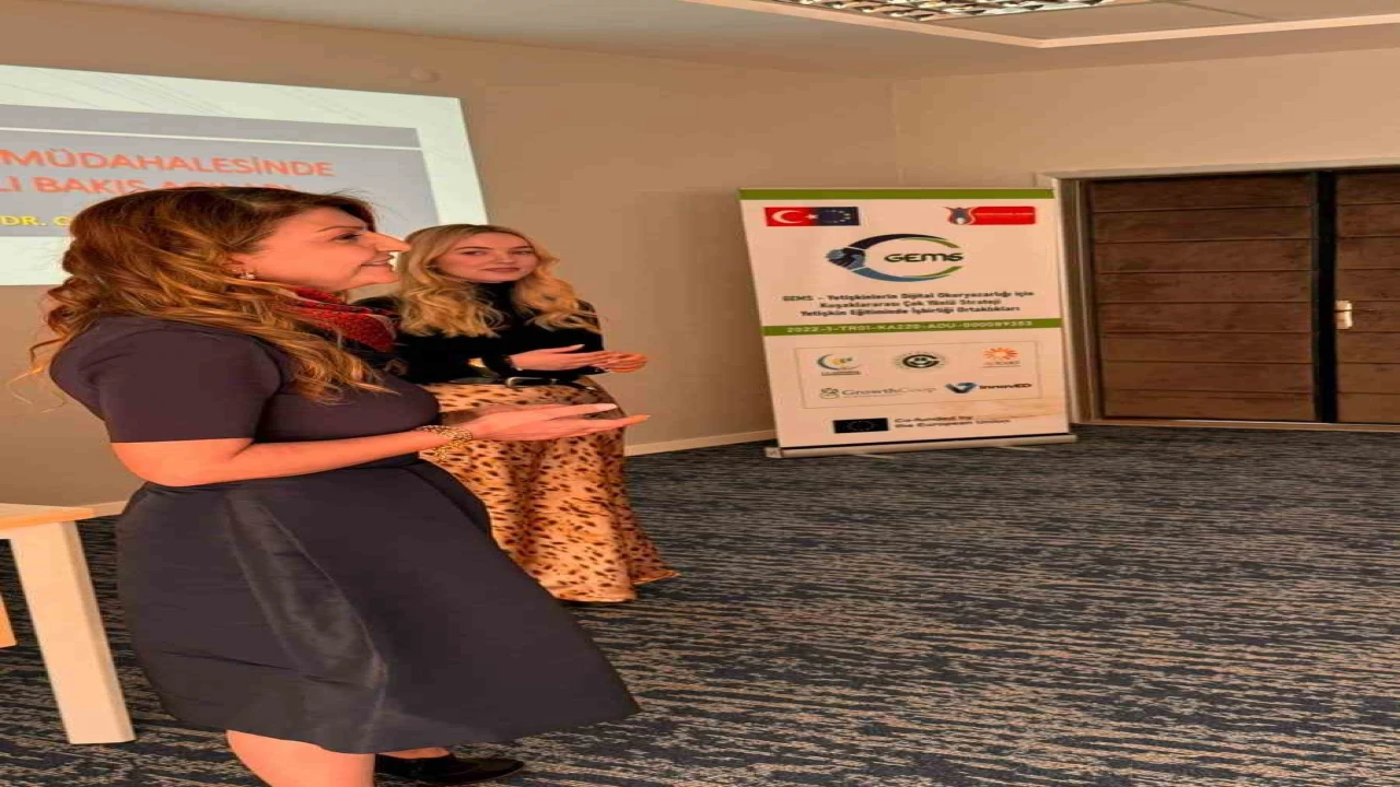 Proje koordinatörlerinden Rezzan Gizir ve Zeynep İşigüzel, katılımcılara GEMS Projesi’nin tanıtım videosunu sunarak proje boyunca elde edilen çıktılar hakkında bilgilendirmeler yaptı.