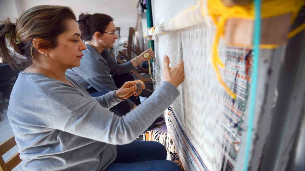 Çukurova Belediyesi Tesisler Müdürlüğü’nün Atatürk Kadın Yaşam Köyü’nde açtığı kilim dokuma