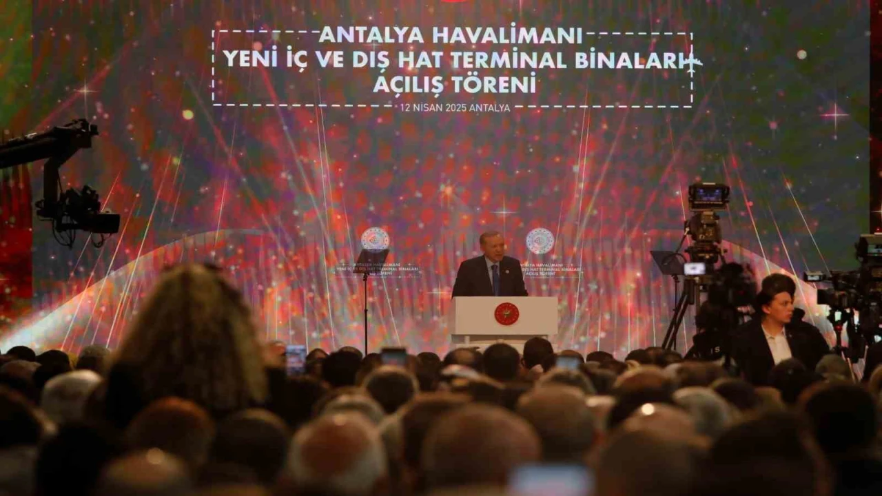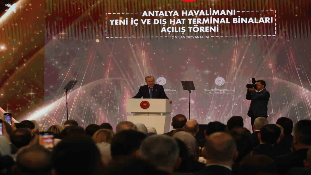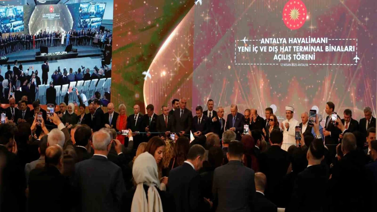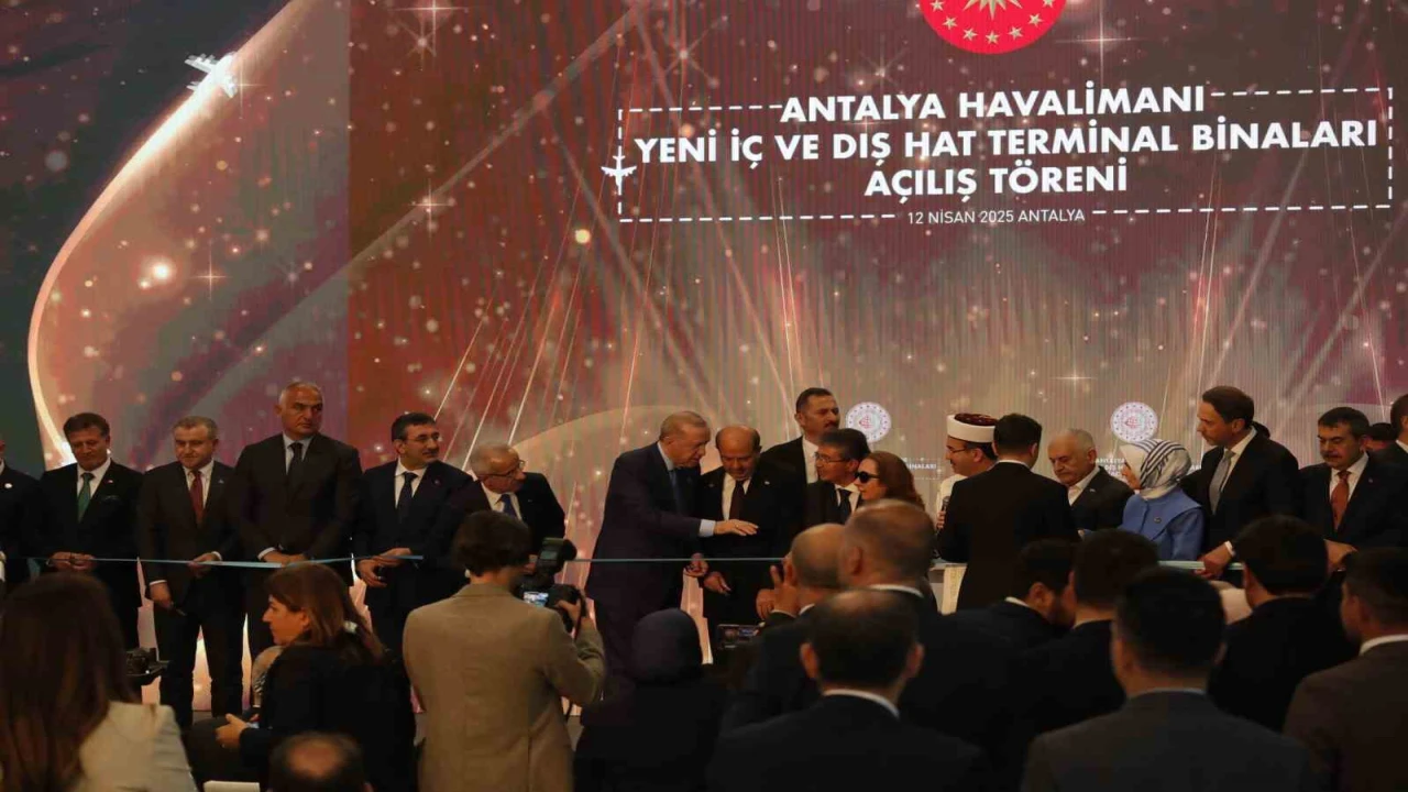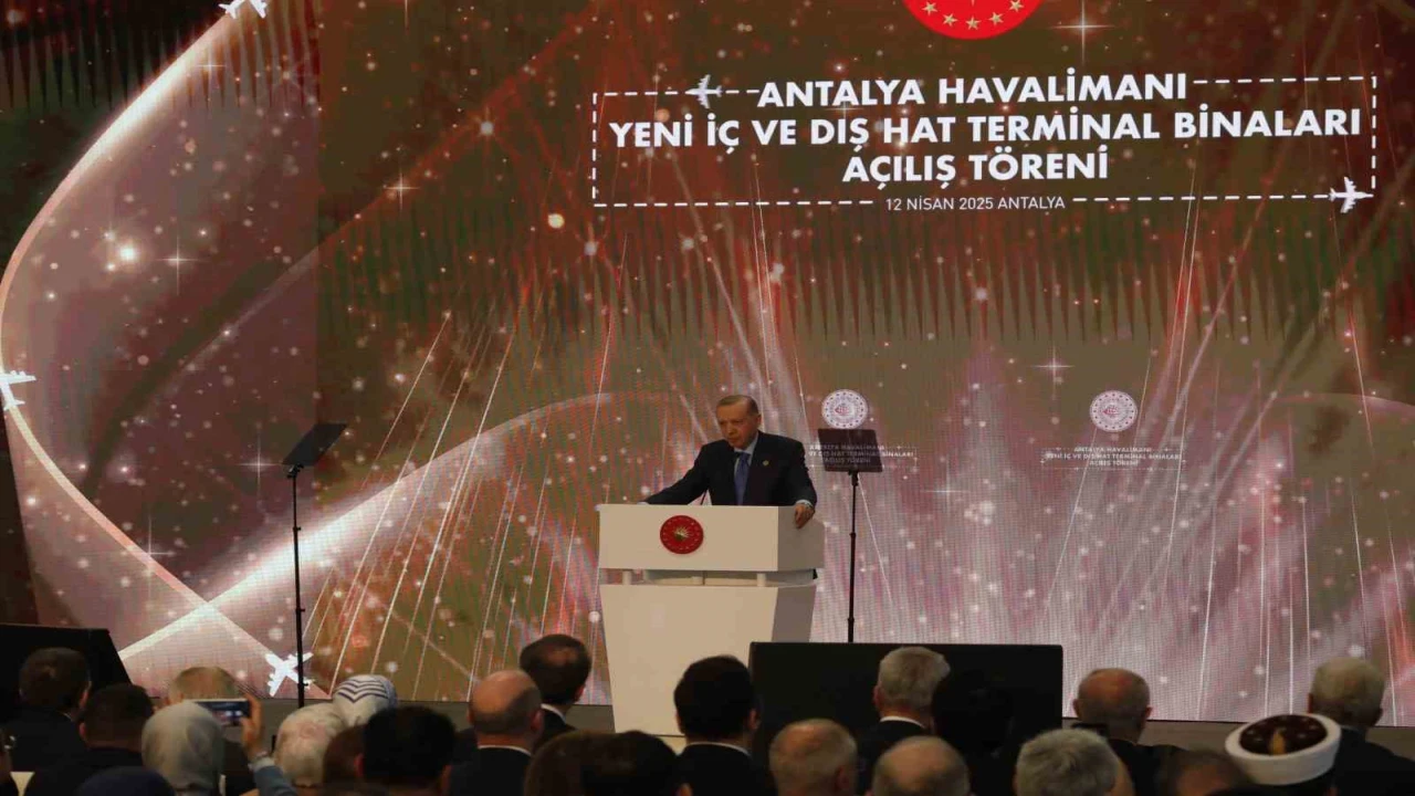 Antalya Diplomasi Forumu (ADF) kapsamında Antalya’da bulunan Cumhurbaşkanı Recep Tayyip Erdoğan, Antalya Havalimanı Yeni Terminal Binası Açılış Töreni’ne katıldı. Cumhurbaşkanı Erdoğan, törende yaptığı konuşmada, "Turizm başkentimiz de kültür, ticaret ve tabiat varlığımızın parlayan yıldızı Antalya’mızda sizlerle bir araya gelmenin bahtiyarlığını yaşıyorum. İnşallah Antalya Havalimanımızın yeni terminal binaları ile birlikte yapımı tamamlanan ek binalarının da açılışını yapacağız" dedi. Projede emeği geçenlere teşekkür eden Erdoğan, yeni terminal binalarının Antalya için hayırlı olmasını temenni etti.