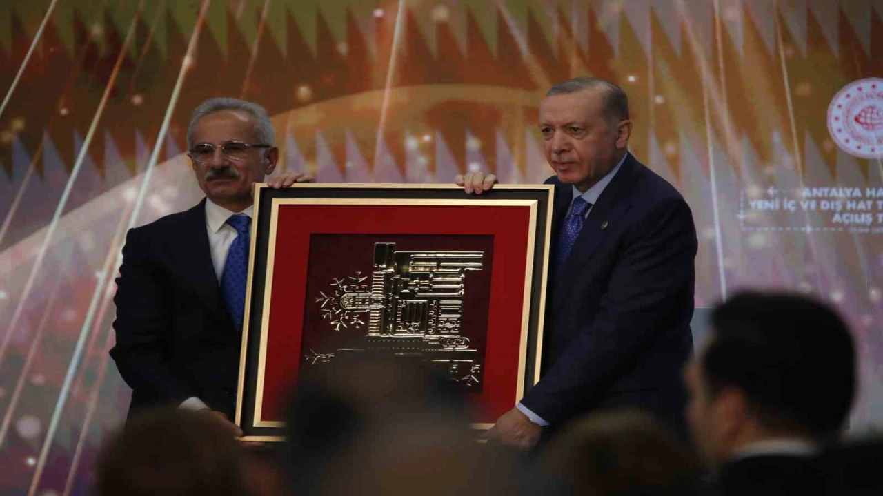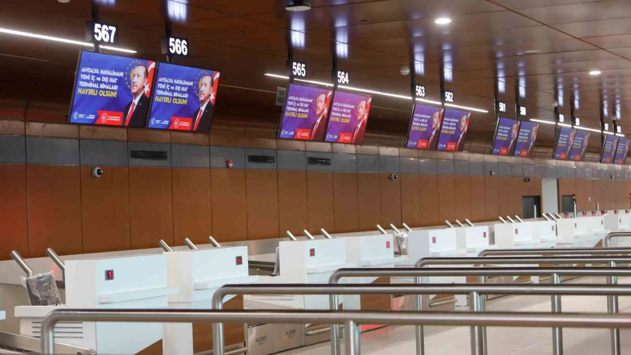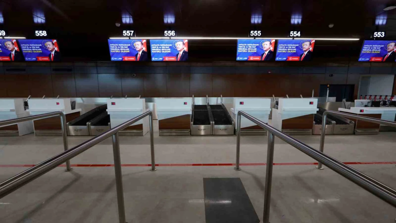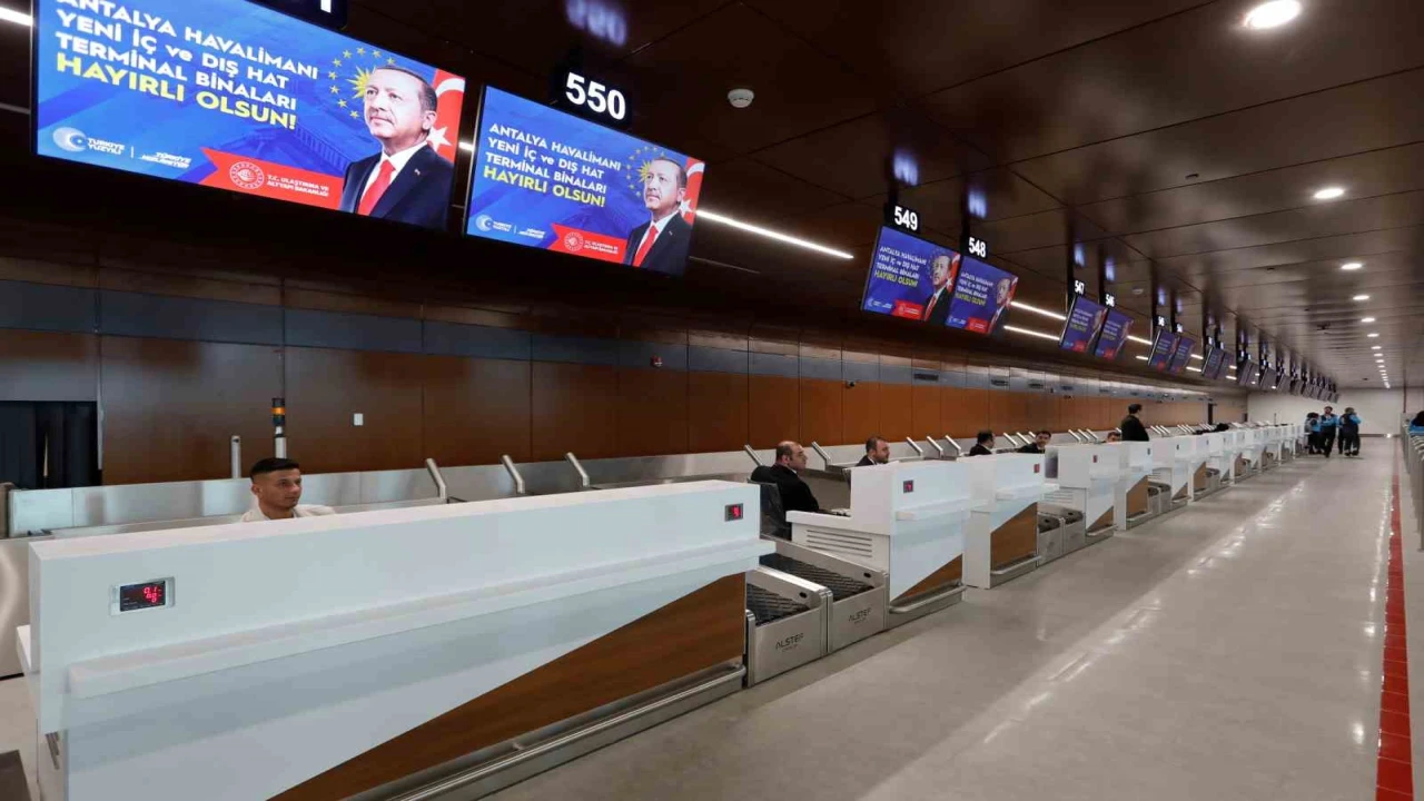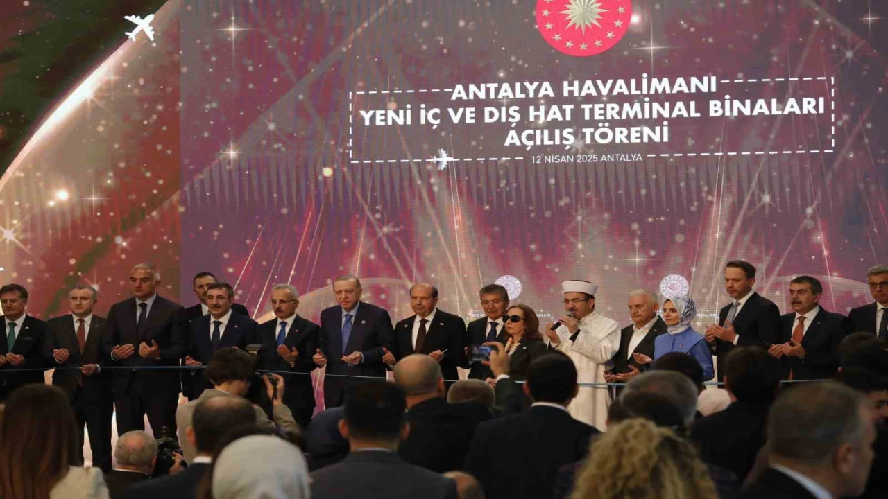 Antalya Diplomasi Forumu (ADF) kapsamında Antalya’da bulunan Cumhurbaşkanı Recep Tayyip Erdoğan, Antalya Havalimanı Yeni Terminal Binası Açılış Töreni’ne katıldı. Cumhurbaşkanı Erdoğan, törende yaptığı konuşmada, "Turizm başkentimiz de kültür, ticaret ve tabiat varlığımızın parlayan yıldızı Antalya’mızda sizlerle bir araya gelmenin bahtiyarlığını yaşıyorum. İnşallah Antalya Havalimanımızın yeni terminal binaları ile birlikte yapımı tamamlanan ek binalarının da açılışını yapacağız" dedi. Projede emeği geçenlere teşekkür eden Erdoğan, yeni terminal binalarının Antalya için hayırlı olmasını temenni etti.