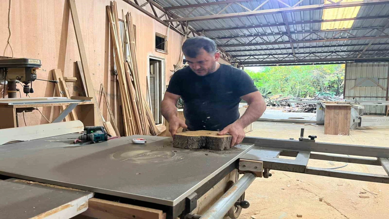 Antalya’nın Alanya ilçesinde Hilmi Özen, marangozluk mesleğini ahşap sanatına dönüştürerek çürümeye yüz tutmuş zeytin ağaçlarını sanat eserine dönüştürüyor. Özen, bir evin altında kurduğu küçük atölyede zeytin ağaçlarını el emeği ürünler haline getiriyor.