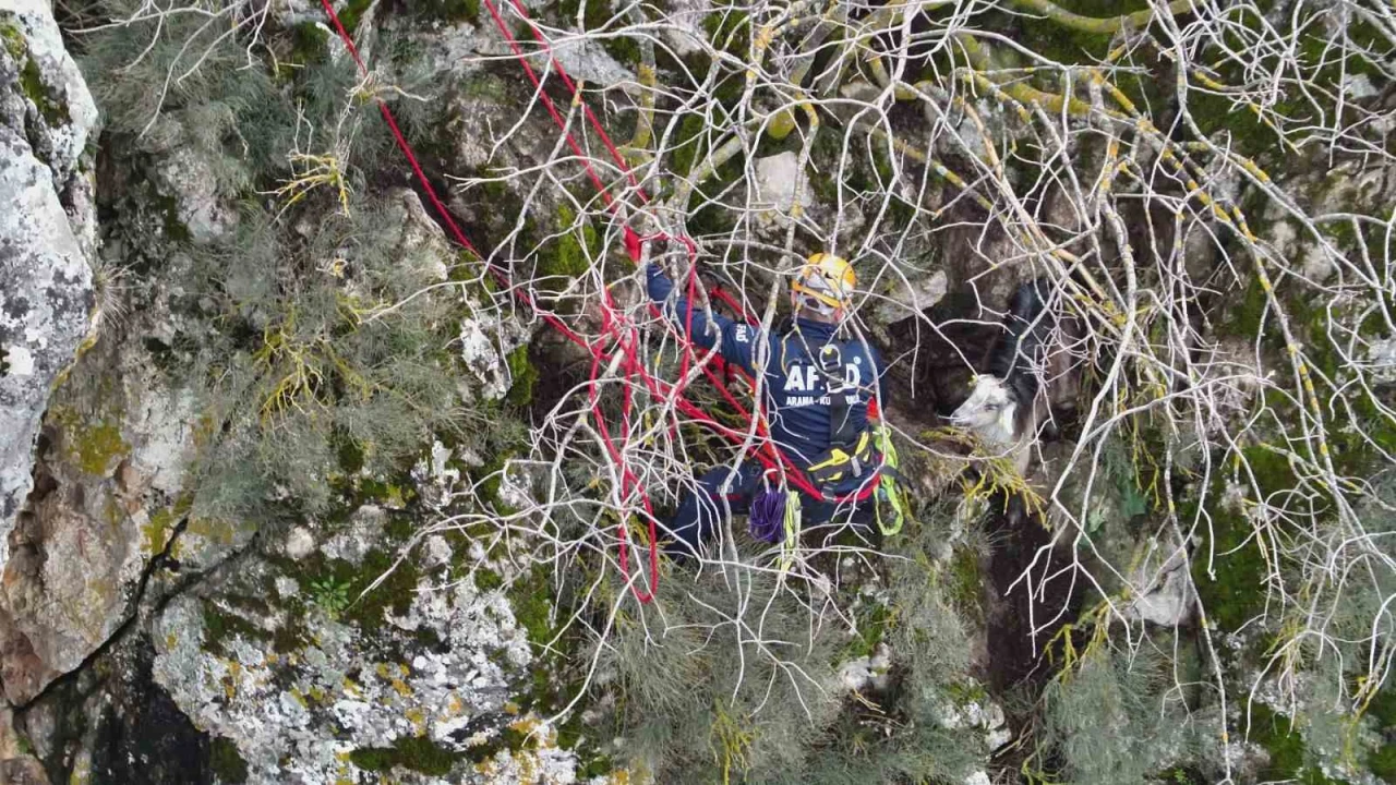 Burdur’un Çeltikçi ilçesinde dağlık alanda mahsur kalan keçi, ekiplerce kurtarılarak sahibine teslim edildi.