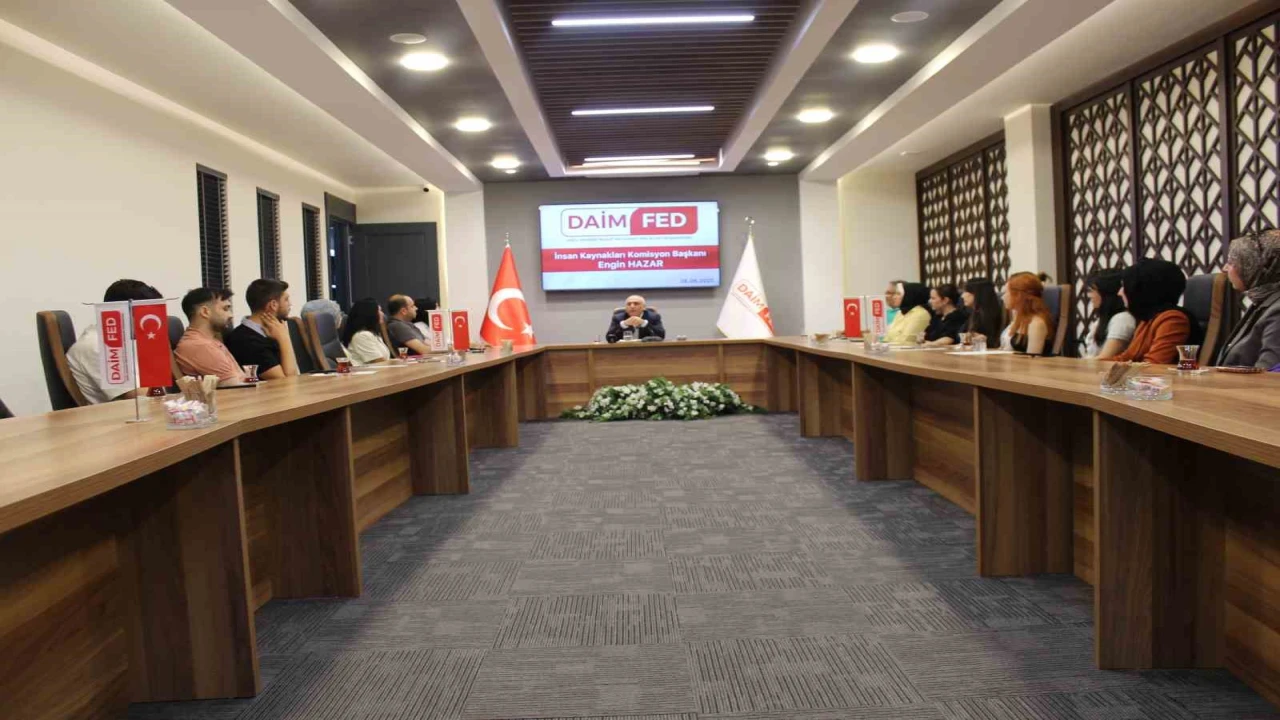 İşe ihtiyacı olan gençlerle, işverenleri buluşturan DAİMFED istihdama köprü olmaya başladı. DAİMFED İnsan Kaynakları Komisyon Başkanı Makine Mühendisi Engin Hazar’ın başkanlığında gerçekleşen toplantıda, gençlerin sorunları dinlendi ve iş hayatına dair tavsiyelerde bulunuldu.
