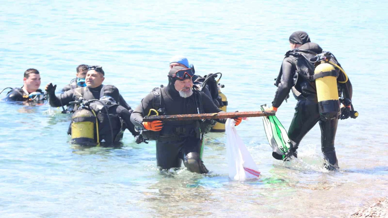 DALGIÇLAR KONYAALTI SAHİLİ'NDEN 80 KİLOGRAM ATIK ÇIKARDI