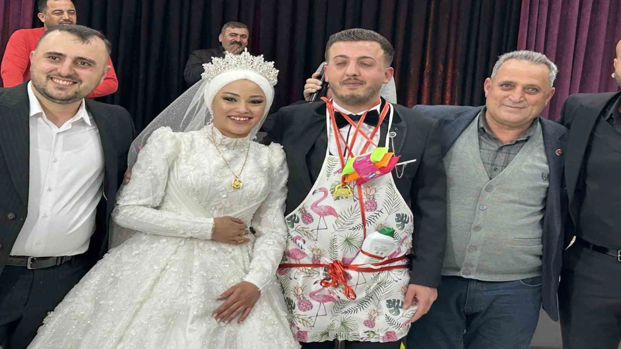 Törende damat Taş’a ilk olarak arkadaşları mutfak önlüğü taktı. Sonra ise arkadaşları damada bulaşık deterjanı, bulaşık süngeri ve bebek emziği taktı. Takıya şaşıran damat ile gelin, arkadaşlarına teşekkür etti. Düğün sonunda mutlu çifti konuklar düğün salonunda alkışlarla yolcu etti.