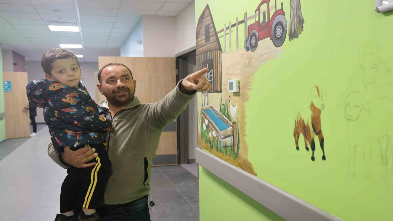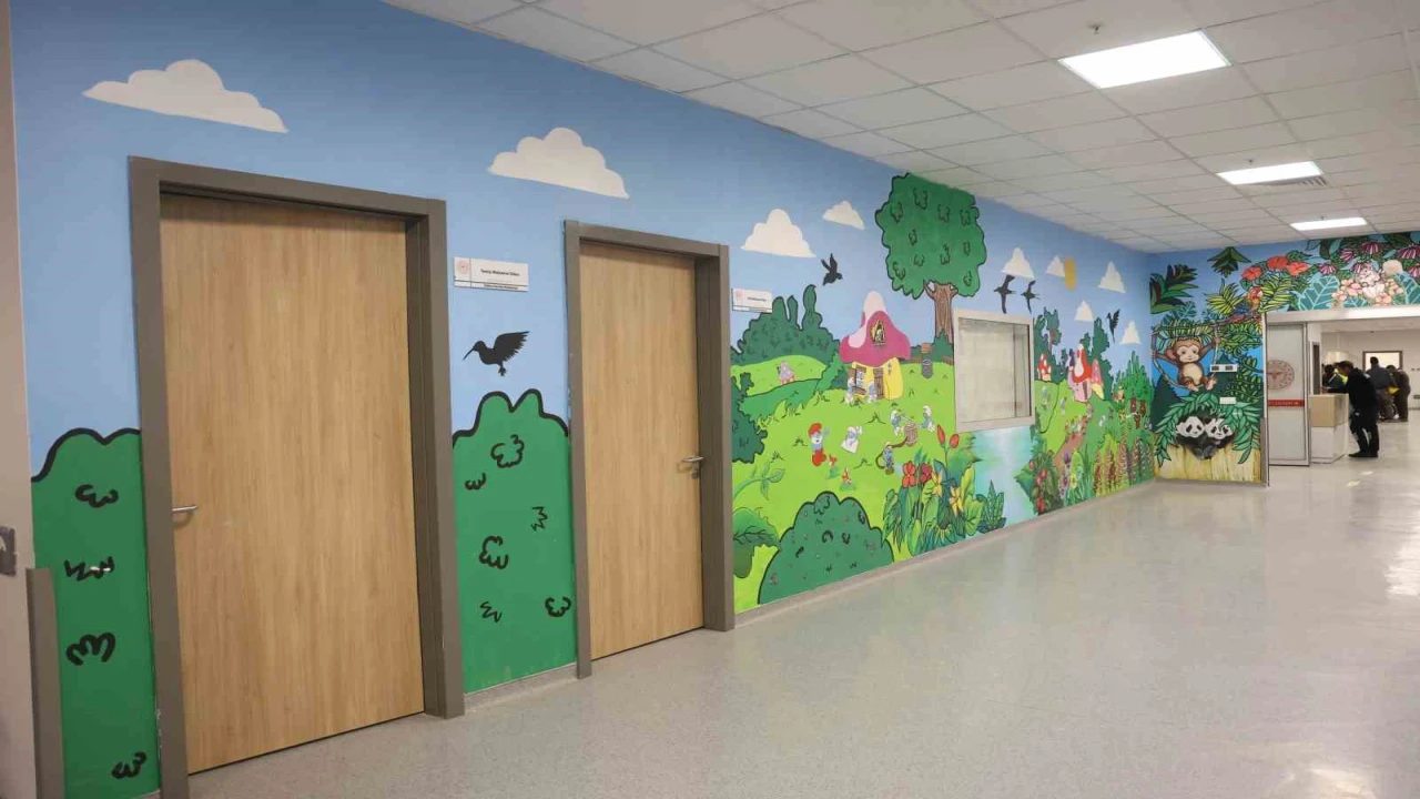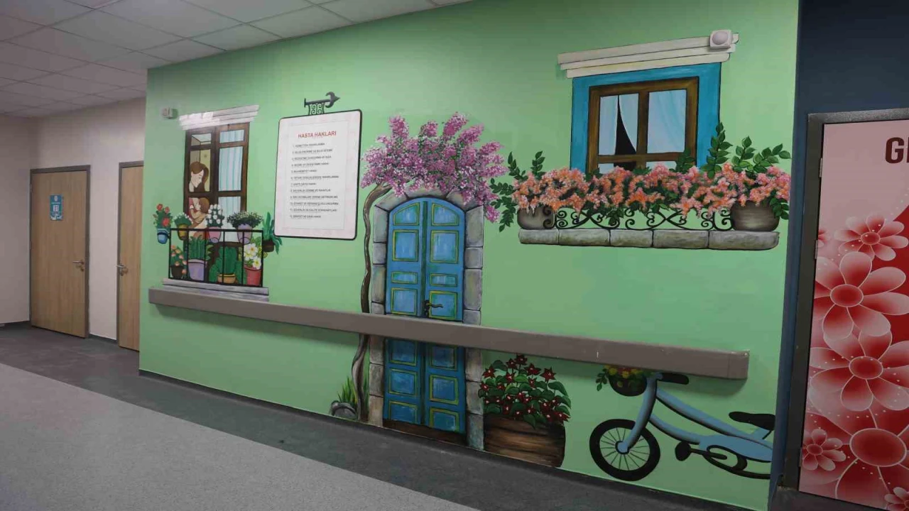 Hastaneye acıyla gelen çocukların yüzlerindeki üzüntüye duvarlara çizilen resimlerle son verildi