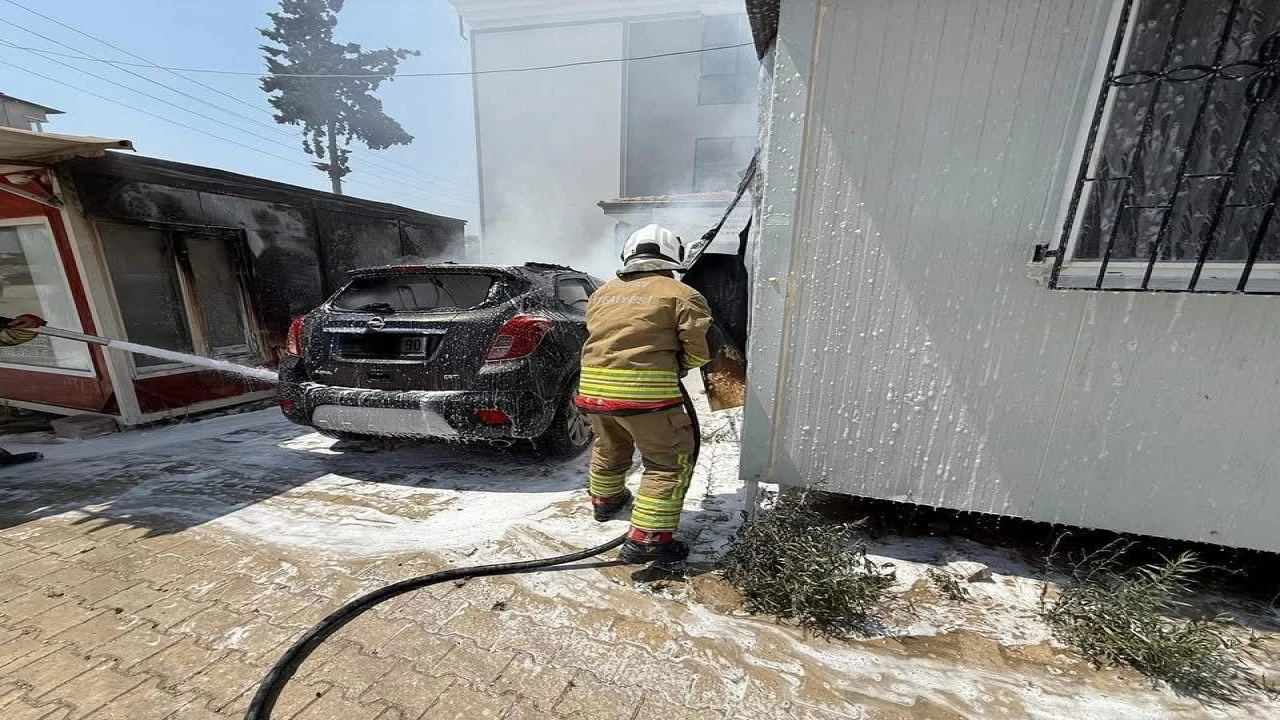 Defne’de konteynerde çıkan yangın araca sıçradı