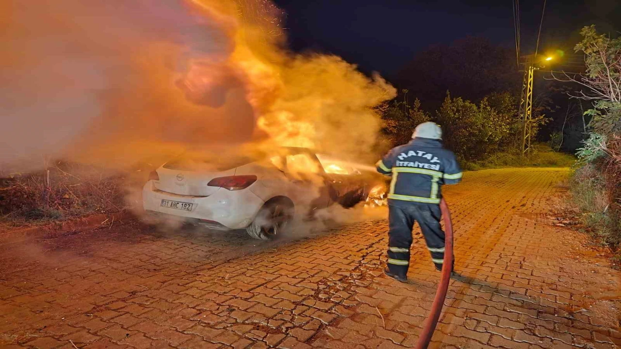 HATAY (İHA) - Hatay'da seyir halindeyken yanmaya başlayan otomobil kullanılmaz hale geldi.