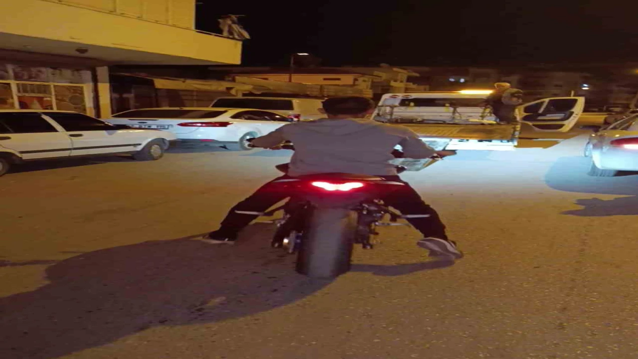 Manavgat ilçesi Aşağı Pazarcı Mahallesi’nde devriye görevi yapan çarşı ve mahalle bekçileri, yanlarından büyük bir gürültüyle geçen ve üzerinde plaka bulunmayan motosikleti takibe alarak kısa süre sonra durdurdu. Bekçilerin anonsu üzerine olay yerine gelen trafik ekibi, motosikletin plakasız olmasının yanı sıra üzerinde abartılı egzoz takılı olduğunu belirleyerek 18 bin 534 TL para cezası uyguladı.