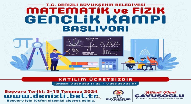Denizli Büyükşehir Belediye Başkanı Bülent Nuri Çavuşoğlu, lise öğrencilerinin soyut matematik ve fizik alanlarına ilgilerini geliştirmek amacıyla “Matematik ve Fizik Gençlik Kampı” düzenleyeceklerini müjdeledi. 22 Temmuz-24 Ağustos tarihleri arasında yapılacak kamp müracaatları online olarak başladı.