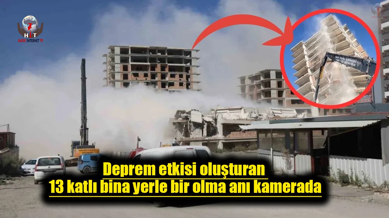 Hatay’ın Antakya ilçesinde 13 katlı binanın iş makinesinin darbesiyle yıkımı vatandaşlara deprem etkisi yaşattı. Kontrollü olarak yıkılan binanın yerle bir olduğu anlar kameraya yansıdı.