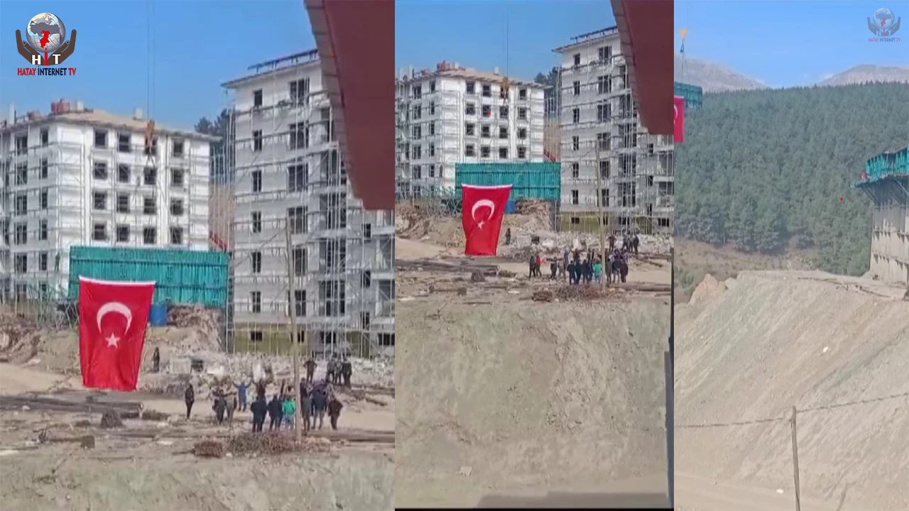 DEPREMİN YARALARININ SARILDIĞI HATAY’DA KONUTLARIN YAPIMINDA ÇALIŞAN İŞÇİLER, TÜNEL KALIP İŞLEMİNİN SORUNSUZ BİTMESİYLE MESAİYİ BİTİMİNDE DAVUL ZURNA EŞLİĞİNDE HALA ÇEKEREK KUTLADI. İŞÇİLERİN HALAY ÇEKTİĞİ ANLAR CEP TELEFONU KAMERASINA YANSIDI.