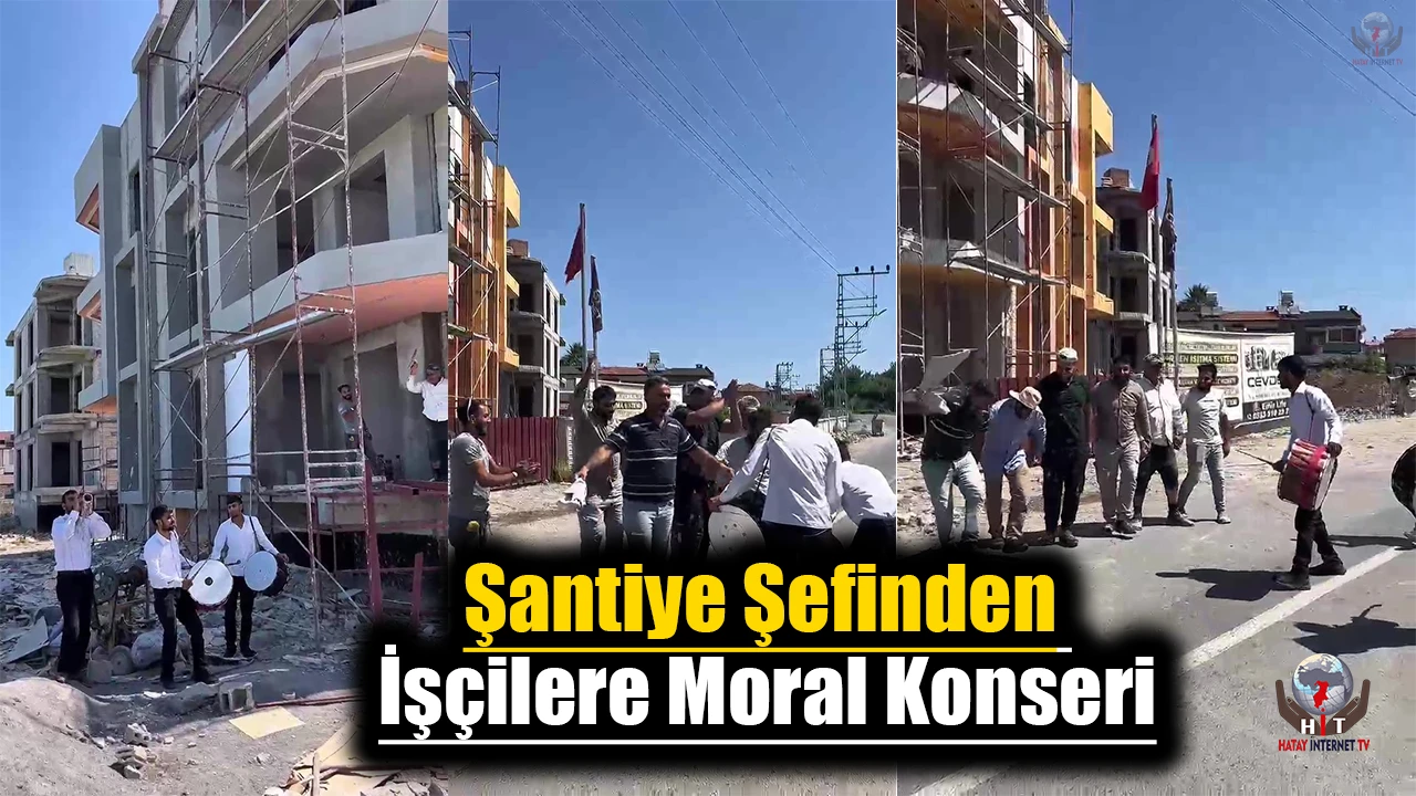 Hatay’ın Arsuz ilçesinde şantiye şefi Aziz Can Üşür, 40 dereceyi bulan sıcakta deprem konutlarında mesai yapan işçilere moral olması amacıyla davul ve zurna çaldırdı. Şantiye içerisinde ortaya çıkan ilginç görüntüler sosyal medyada ilgi odağı oldu.