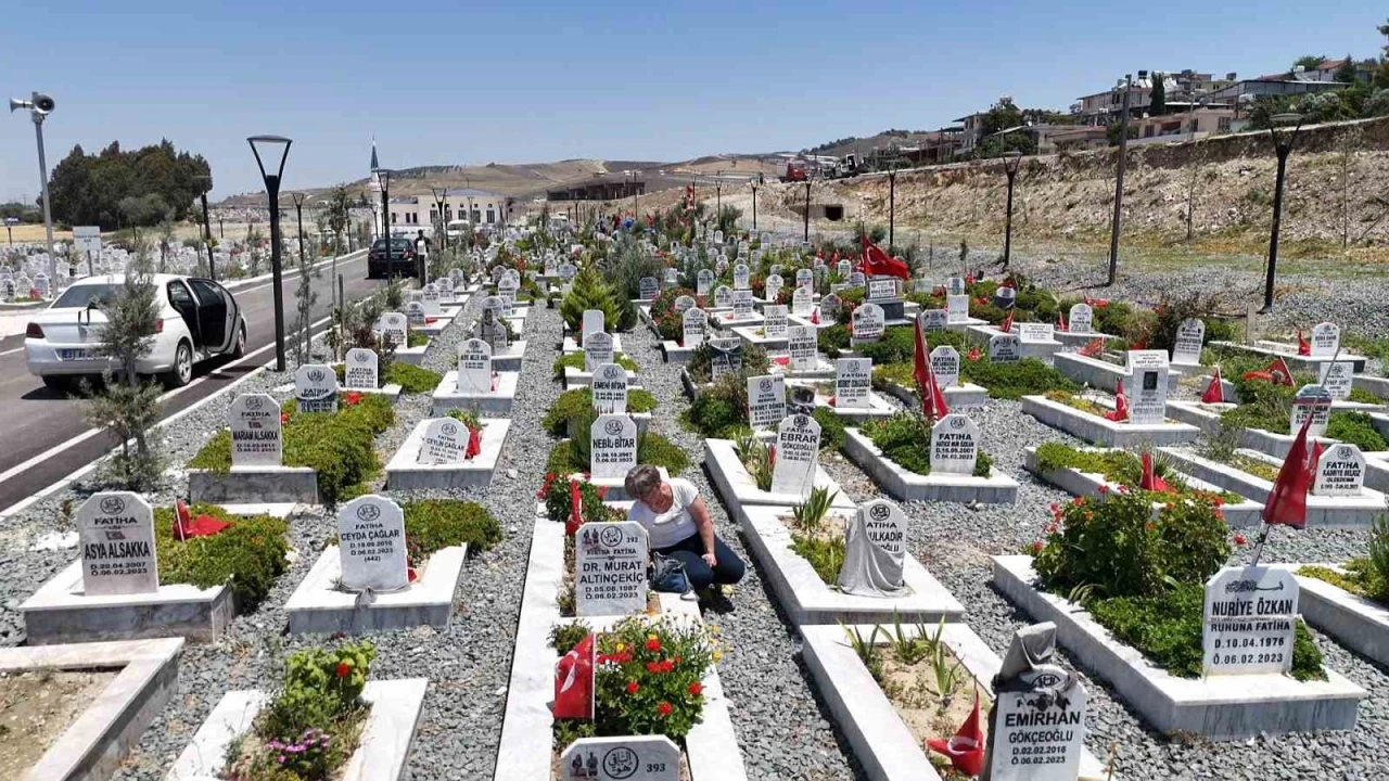 Hatay’da Kurban Bayramı arefesinde deprem mezarlığını ziyaret eden vatandaşlar, yakınlarının mezarlarının başında hüzün içerisinde dua ettiler.