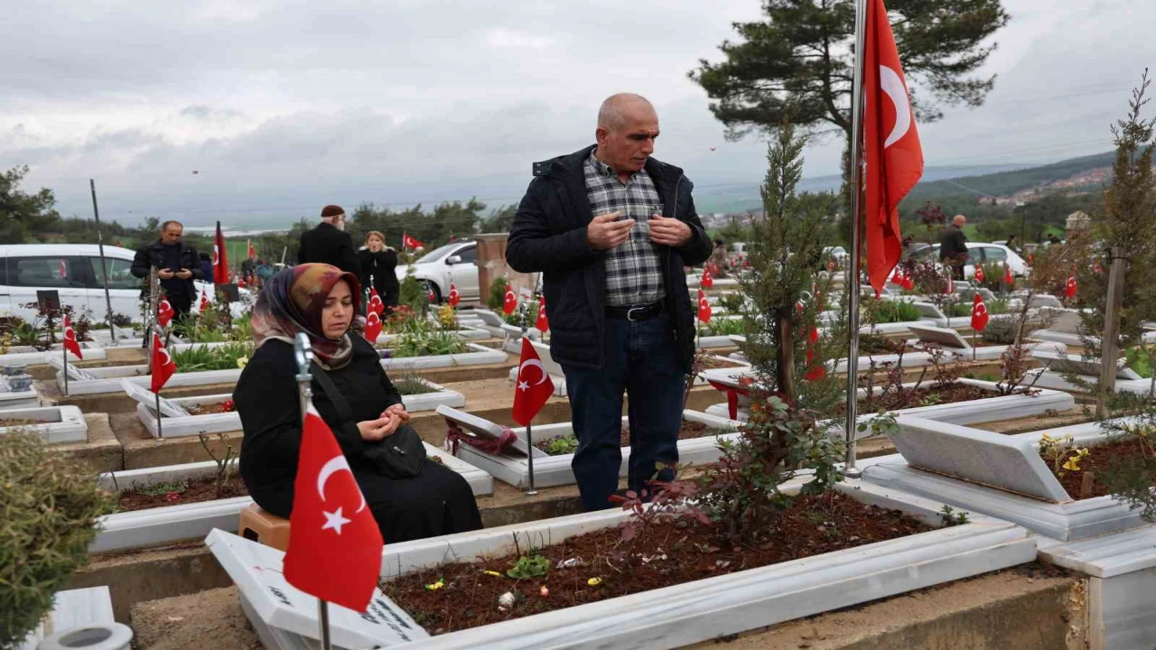 Kahramanmaraş’ta depremzede vatandaşlar, Ramazan Bayramı’nın ilk günü yakınlarının kabirlerini ziyaret etti.
