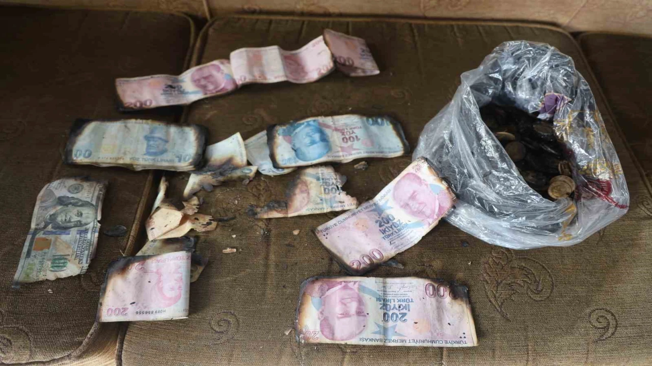 Depremin ardından ikinci kez yuvasız kalan Enderun'un ailesinin biriktirdiği paralar ve eşyalar yanarak küle döndü.