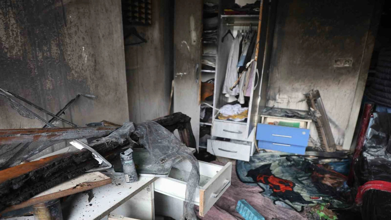 Geldiğimizde ise alevlerle karşılaştık. Apartman girişine inip yardım istedim, yardım edin diye bağırdım. Komşular da itfaiye ekiplerine haber verdiler. Depremde bu mahallede oturuyorduk. Depremde evimiz yan yattı ve sonrasında yıkıldı. Burada 1 yıldır yaşıyorum. Bu odada büyük oğlum kalıyor. Oğlum içeride değil de mutfaktaydı. Odasına geri döndüğünde odam yanıyor diye bağırmıştı. Çocuğumun odası komple yandı ve biraz da benim odama sıçradı.