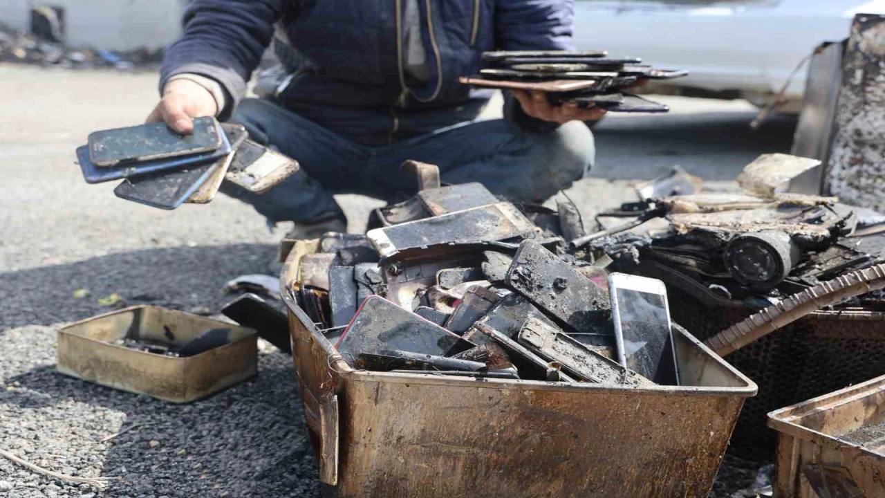 HATAY'DA ALEVLERE TESLİM OLAN KONTEYNER TELEFONCU DÜKKANINDAKİ ÇOK SAYIDA TELEFON VE TEKNİK CİHAZ YANARAK KULLANILMAZ HALE GELDİ. ASRIN FELAKETİNDE İŞ YERİ YIKILDIKTAN SONRA YENİ İŞ YERİNİNDE YANDIĞINI SÖYLEYEN MEHMET ALİ YALÇIN, 1 BUÇUK-2 MİLYON TL’LİK ZARARI OLDUĞUNU SÖYLEDİ.