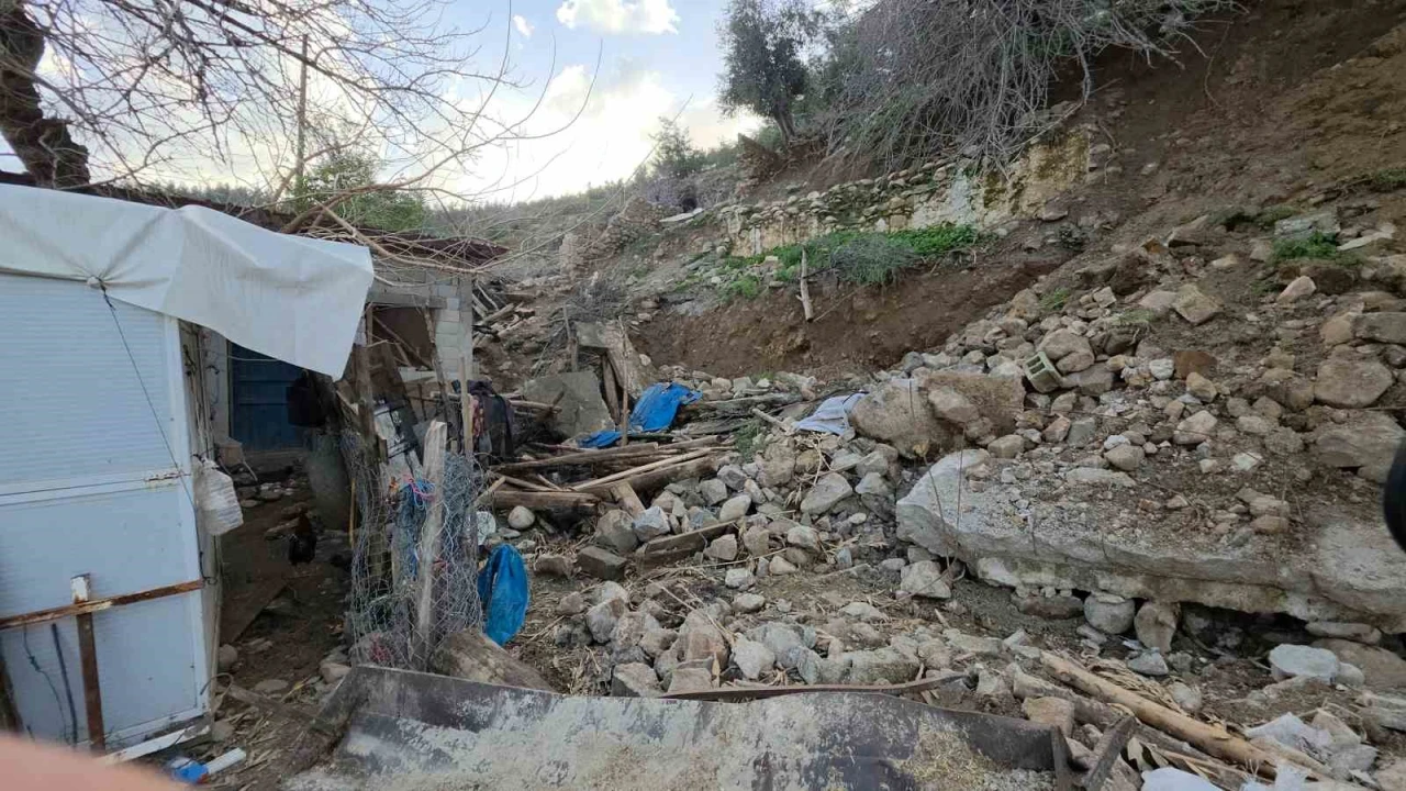 Hatay’da etkili aşırı yağışla birlikte Adem Göçer’e ait küçükbaş hayvan ahırının üzerine istinat duvarı çöktü. Depremde yıkılan evin yerine yapılan ahırın üzerine çöken duvar 8 hayvanı telef etti.