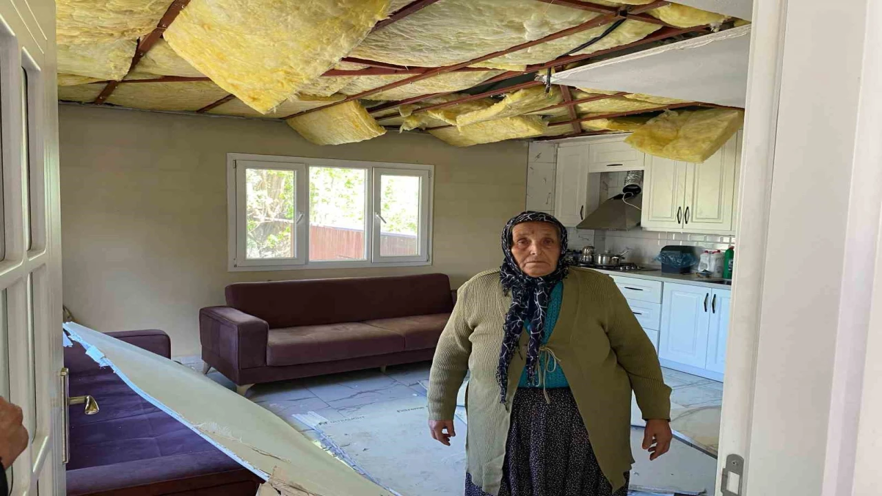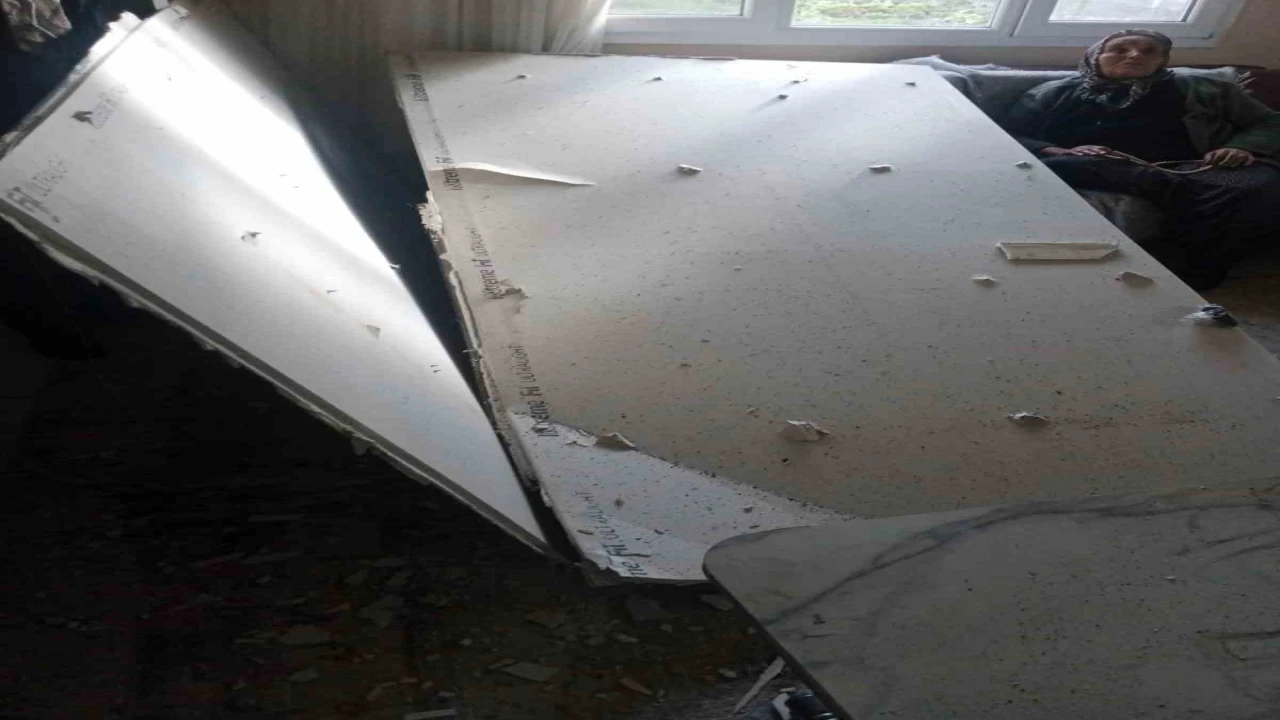 OSMANİYE (İHA) – Osmaniye’de depremde evi yıkılan Zübeyde Can’ın çocukları tarafından yaptırılan yeni yuvasının tavanı üzerine çöktü. Hayallerle kavuştuğu evinin tavanı çöken Can, deprem korkusunu yeniden yaşadığını söyledi.